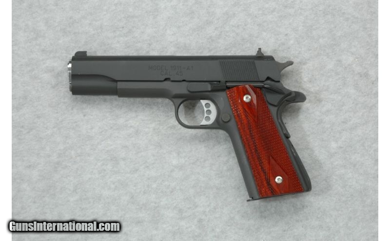 Description: SOLD Caliber Info: .45 Auto Chambers: 7 shot magazine. Metal Condition: Very good. Wood Condition: Very good. Bore Condition: Very good. Barrels: 5 inches. Stock: Checkered walnut grip panels. Weight: 41 oz. Sights: Blade front. Square notch rear. 3 white dot. Extras: With Hard Case Item Location: Sun Prairie, WI |