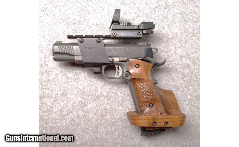 Description: SOLD Caliber Info: 45 Auto Metal Condition: Handling marks scratches, small wear marks muzzle has wear, worn area bottom of receivor mag tube Wood Condition: Handling marks scratches edges have some indentations Bore Condition: Very good Barrels: 5 inches Triggers: Corroded match trigger Stock: Walnut custom left handed match grips Weight: 3 Lbs. Sights: Factory Adjustable match Sights/blade front Panorama MK -III sight Extras: Comes with a case and three magazines. Item Location: Lacey, WA |