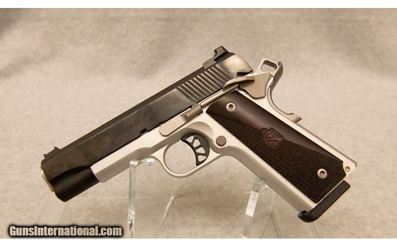 Description: Springfield Armory Model Ronin, chambered in 9 mm, with a 9 round magazine. Features include: forged aluminum alloy frame, match grade SS forged bull barrel, forged carbon steel blued slide, fiber optic front and tactical rack white-dot rear sight, wood grips, stainless/black finish 9mm Luger SOLD Chambers: 9 mm Metal Condition: Very Good Wood Condition: Very Good Bore Condition: Very Good Barrels: 4' Sights: "White Dot Rear, Fibre Optic Front Item Location: Fort Mill, SC |