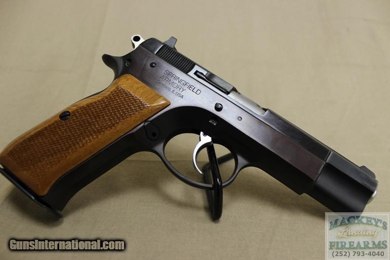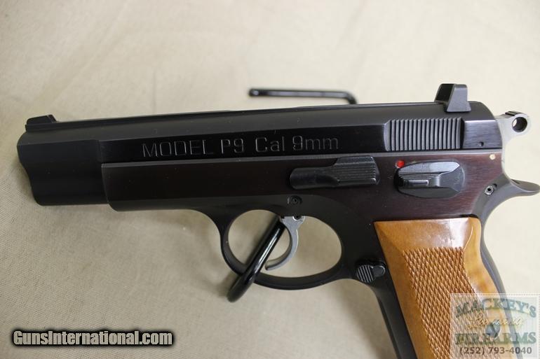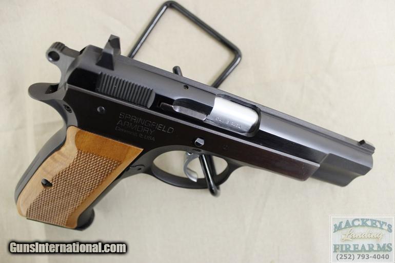Description: This Springfield Armory Model P9 9mm has wood checkered grips, rear slide serrations, front- and back-strap serrations, dovetailed rear sight, blade front sight, smooth trigger, and thumb safety. Call (252)793-4040 for more information. Please reference our inventory 50705. FFL required for shipping. No shipping outside of the US. SOLD |