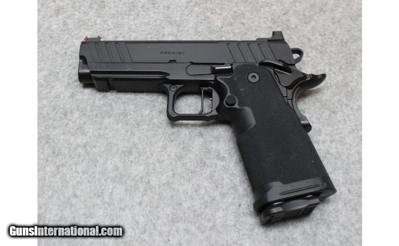 Description: Springfield Prodigy semiautomatic pistol chambered in 9mm. Comes with factory box, soft case and 2 magazines. 9mm Luger SOLD Metal Condition: Very Good Wood Condition: Very Good Bore Condition: Bright And Clear Barrels: 4 Inch Triggers: Factory Flat Face Single Action Weight: 2 lbs 6 oz Sights: Red Fiber Front / U-Notch Rear / Optic Cut Item Location: Allen, TX |