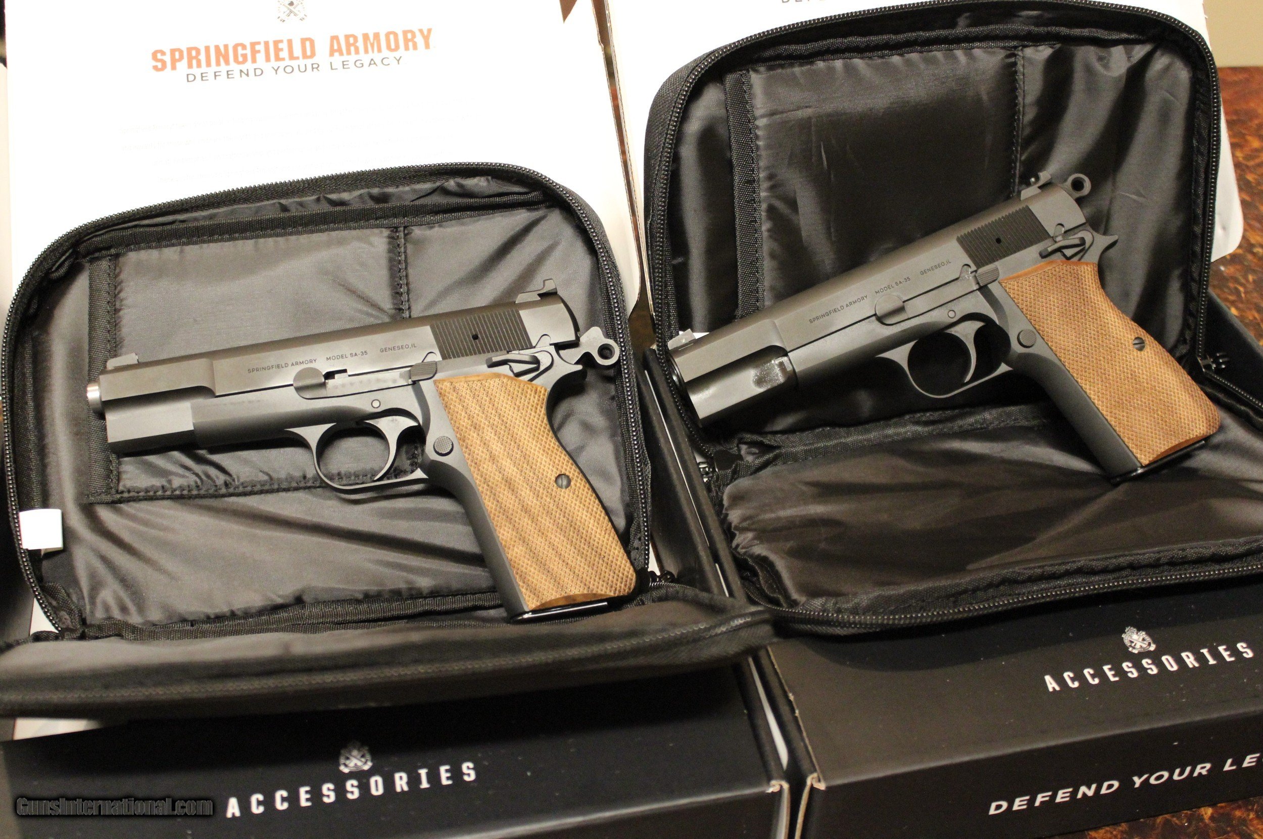 Description: Based on one of the most prolific and popular pistols in small arms history, the Springfield Armory® SA-35 gives today’s shooters a modern take on a revered classic. Featuring subtle but significant upgrades to John Moses Browning’s original P-35 design, the 9mm SA-35 captures the appeal of the “wood and steel” era of arms making while offering the upgraded enhancements of today’s defensive pistols. Made in the U.S.A., the SA-35 features rugged forged steel parts for strength and durability, improved ergonomics and enhanced controls, a factory tuned trigger, modern sights, an improved feed ramp design, and an increased 15-round capacity. CONSECVITE PAIR, NEW IN STOCK! NO WAITING! SOLD |