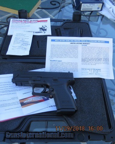 Description: Springfield XD 45, 45 Caliber, 4 inch barrel, Blue, 10 shot, 2-magazines in Factory box with all accessories. Used like new condition. I purchased this semi-auto pistol new for my collection in 2007. Pistol has only been fired about 20 times. I am a private collector clearing out some of my collection. Payment shall be made by a USPMO or a Bank Certified Check ONLY. Shipping will be a flat rate of $30.00 properly packaged and shipped from me to your FFL Dealer provided they will send me a copy of their FFL information. If not and it has to go FFL to FFL please add $20.00 for this service. Insurance may be purchased for a rate of $1.55 per hundred of selling price. I recommend that insurance be purchased. As I will not be responsible for any item once shipped if insurance is not purchased. Payment must be recieved with in 10 days of sale or the item will be re-listed. Look closley at the pictures it is 100% in factory case. Thanks for looking and please take a look at my other listings. Go to top of page and click in blue area on see all my listings. NO TRADES, SOLD AS IS NO RETURNS. SOLD Manufacturer: Springfield Model: XD-45 Serial Number: US7591XX Caliber Info: 45 Condition: New Metal Condition: New Bore Condition: New |