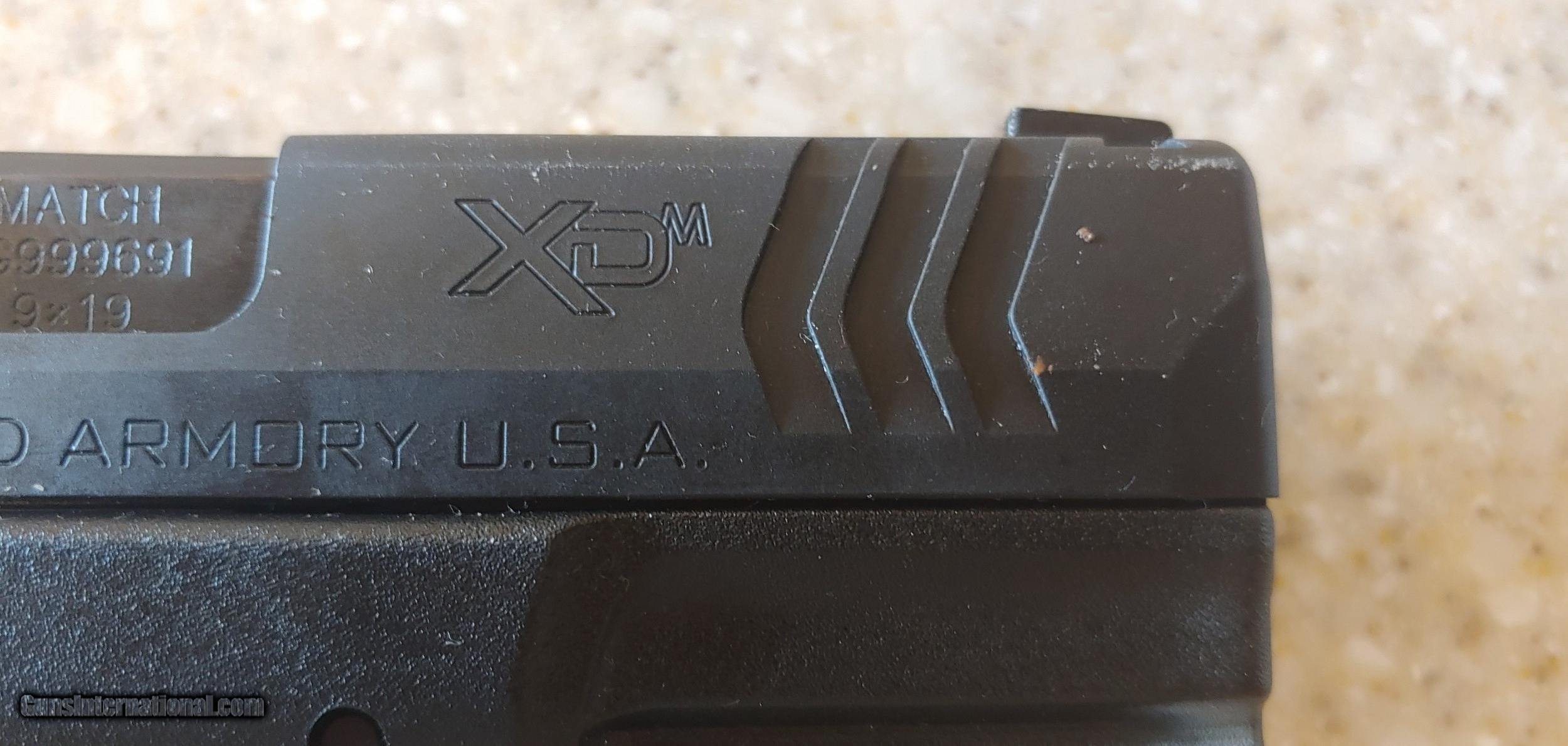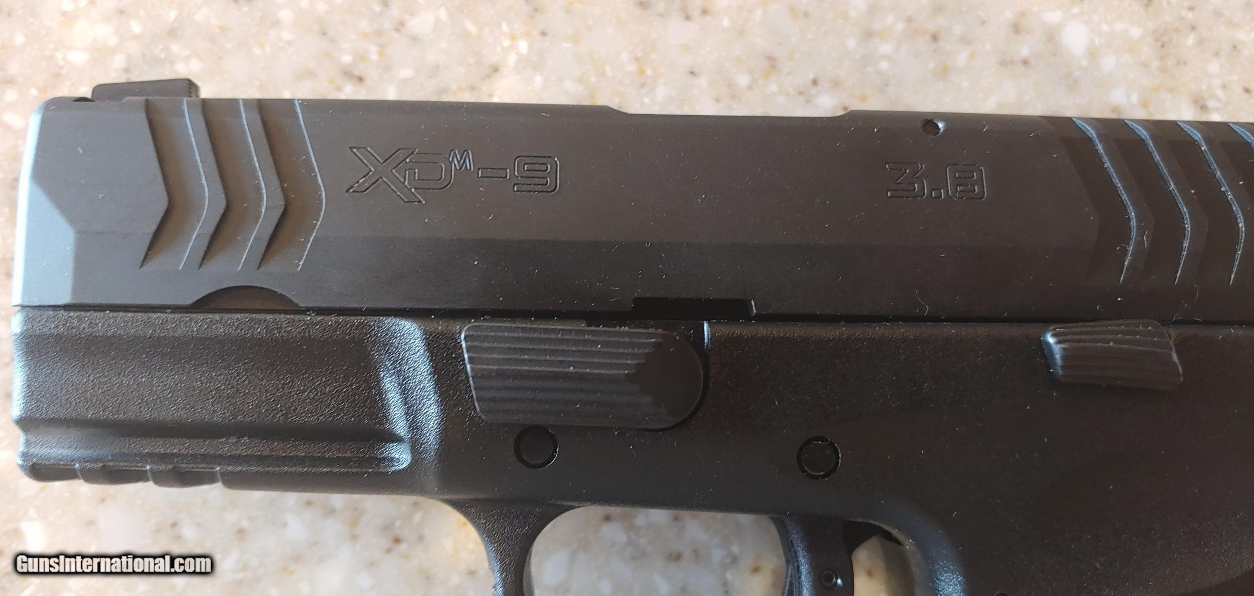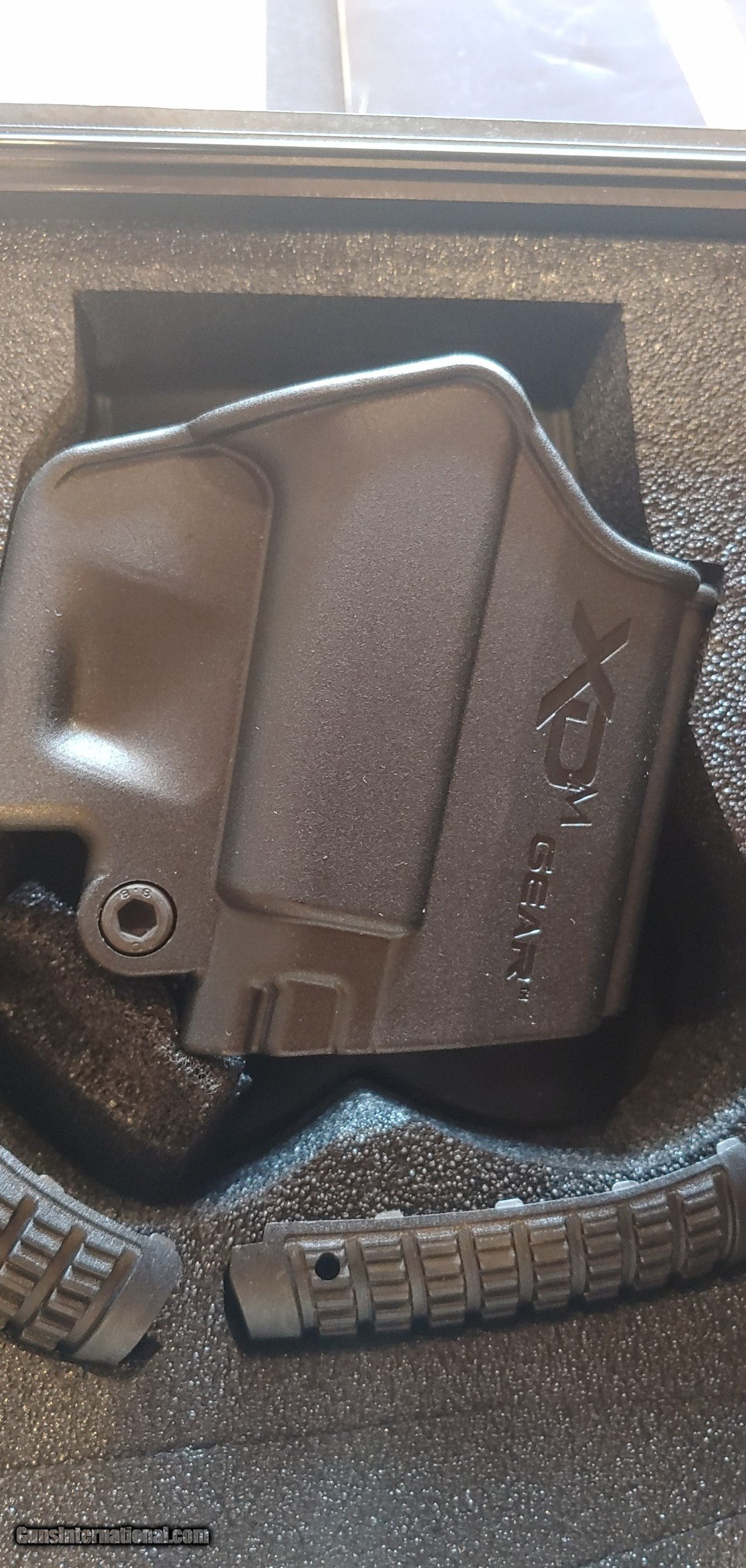 USED SPRINGFIELD XDM 9MM WITH ORIGINAL CASE, SPEED LOADER, EXTRA BUTT GAURDS,LOCK , HOLSTER,EXTRA