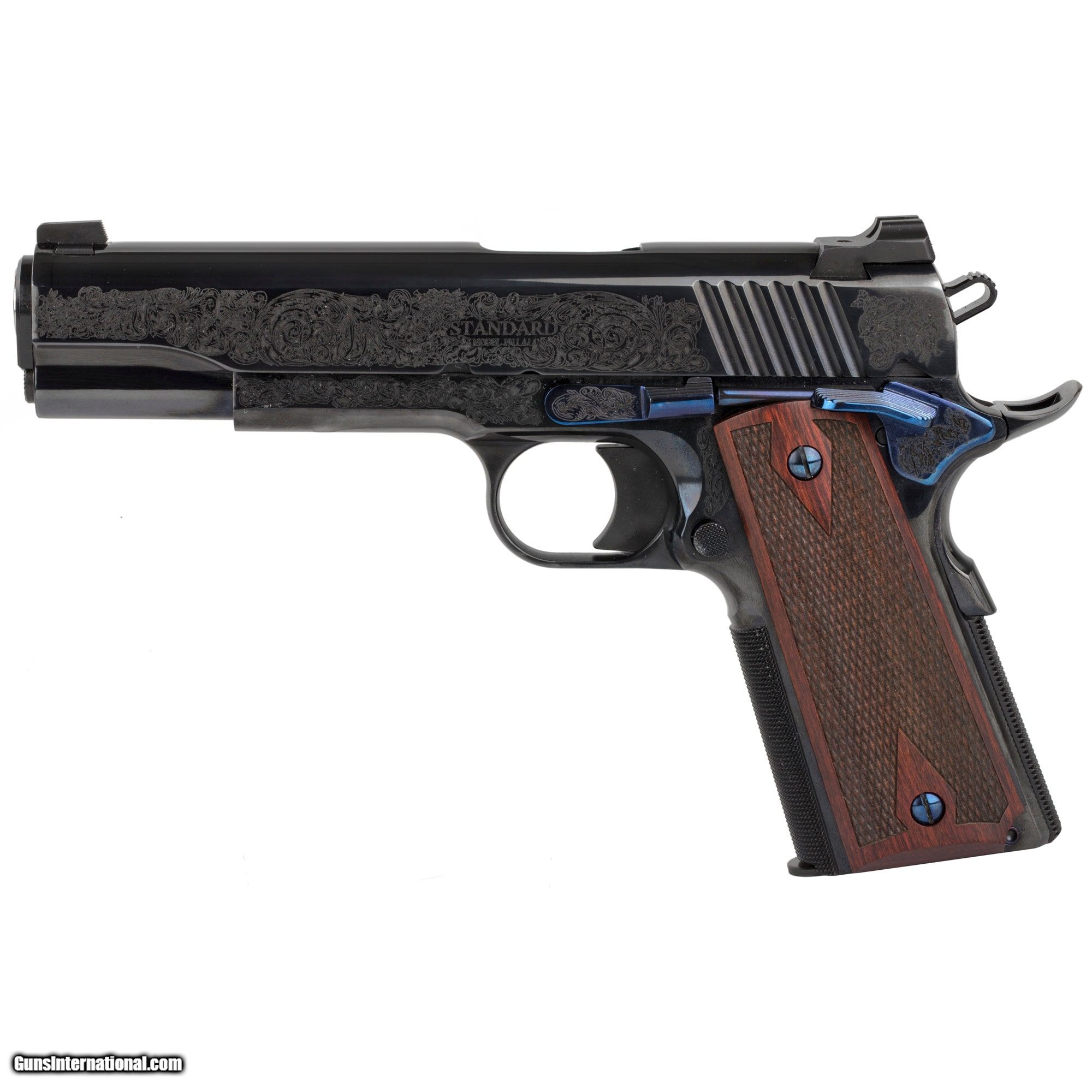 Description: Guns Listing ID: 493171 Standard Manufacturing‚‚s 1911 in .45 ACP has a 5-inch, stainless steel, match-grade barrel with match-grade bushing for a tight, exact fit to the barrel and slide to ensure superb performance and accuracy. It has low mount tactical sights, a match-grade trigger, and gorgeous hardwood grip panels. - CALIBER .45 ACP - MAGAZINE (1) 7rd capacity - BARREL 5\" Match Grade w/ Bushing - SIGHTS Low Mount Tactical - GRIPS Rosewood Double Diamon SOLD Manufacturer: STANDARD MANUFACTURING Model: 1911 ENGRAVED NO. 1 Caliber Info: .45 ACP Condition: new Barrels: 5" BARREL Finish: BLUED |