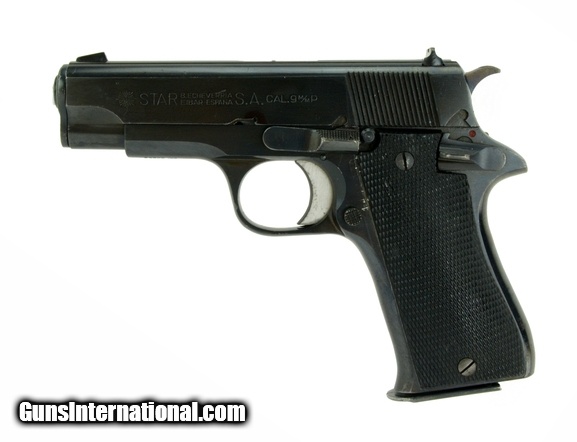 Description: Star BM 9mm caliber pistol. Compact auto with Spanish police mark on slide.
