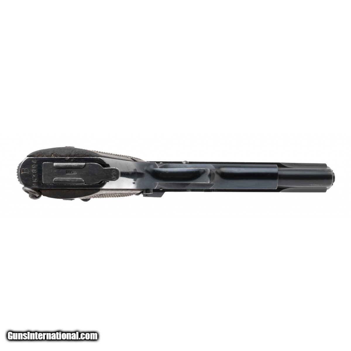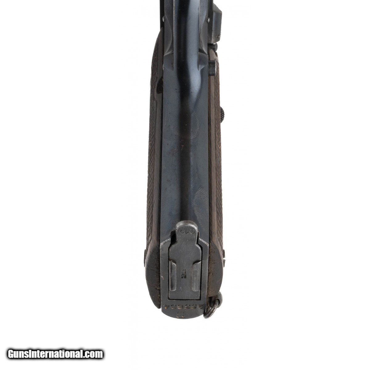 Description: " Serial No. 253604, Made in 1944, 9mm Para with a 5"" barrel. Bore is very good with light wear. WWII German military pistol, 4th variation with later slide logo. Has 90% original finish with light wear. Waffen amt marked on the frame. The grips are very good. Overall very good condition. Consignment. SOLD |