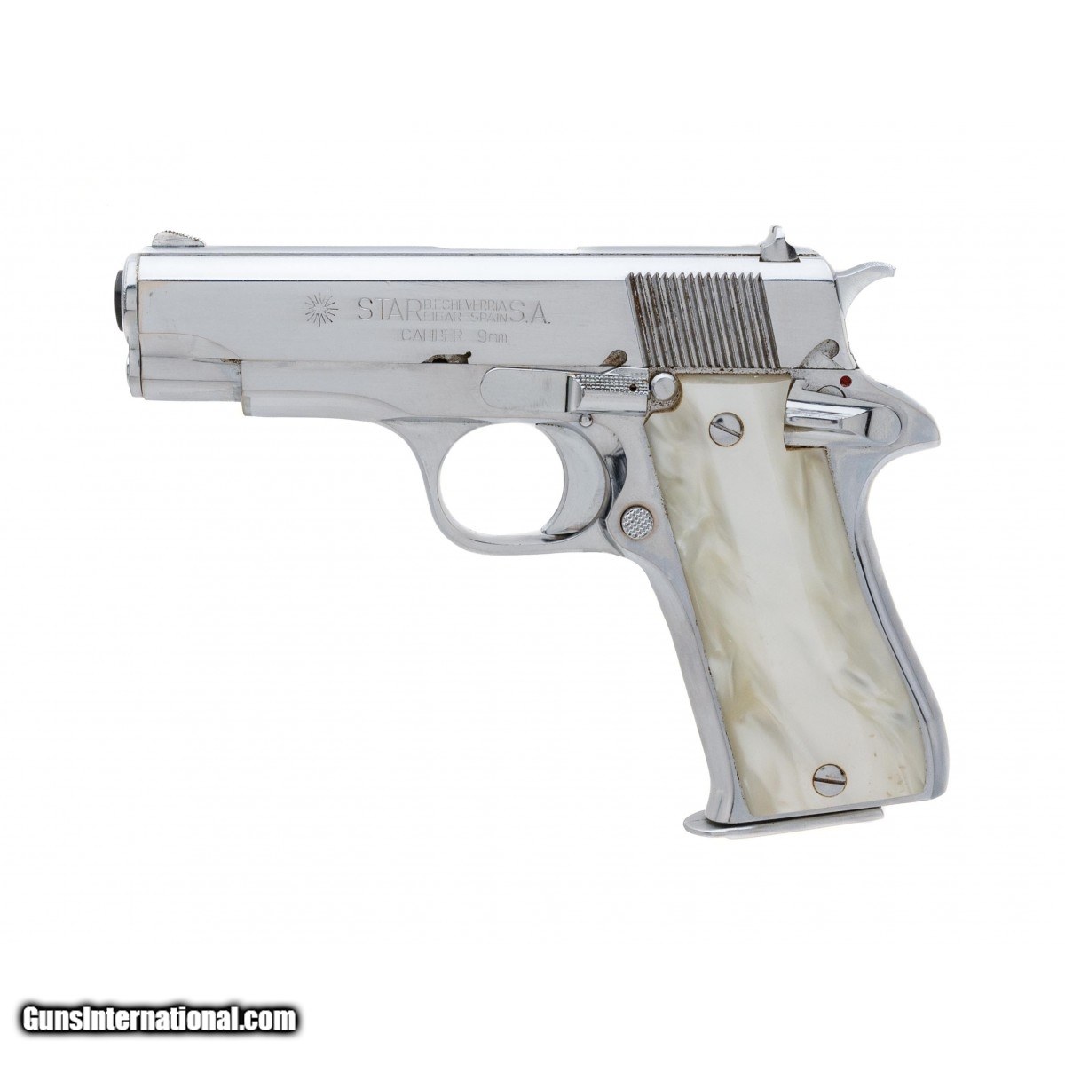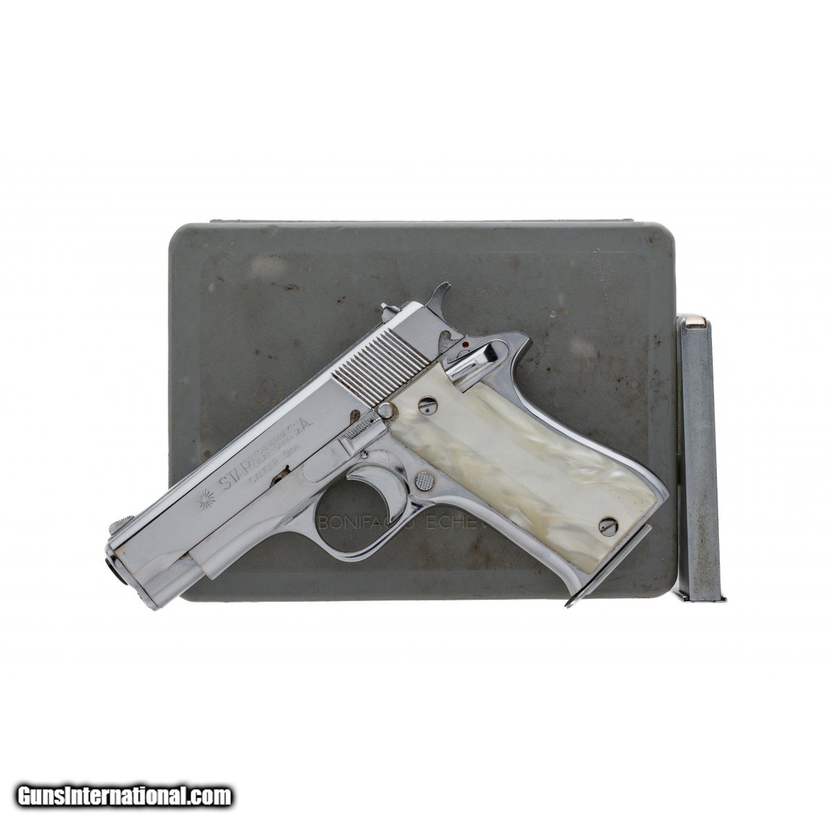 SN:1575407. Made in 1981 9mm with 3.75"" barrel. Bore is excellent. Steel frame with chrome finish. Faux pearl grips in excellent condition. Fixed sights. Overall condition is excellent. Comes in original box with extra magazine.