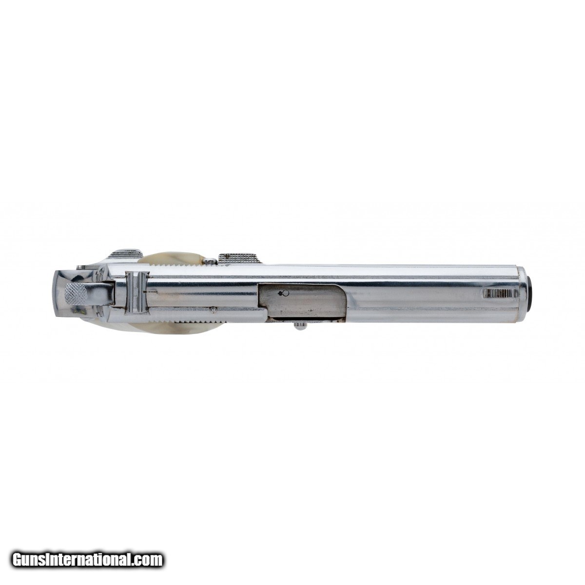 Description: " SN:1575407. Made in 1981 9mm with 3.75"" barrel. Bore is excellent. Steel frame with chrome finish. Faux pearl grips in excellent condition. Fixed sights. Overall condition is excellent. Comes in original box with extra magazine. SOLD |