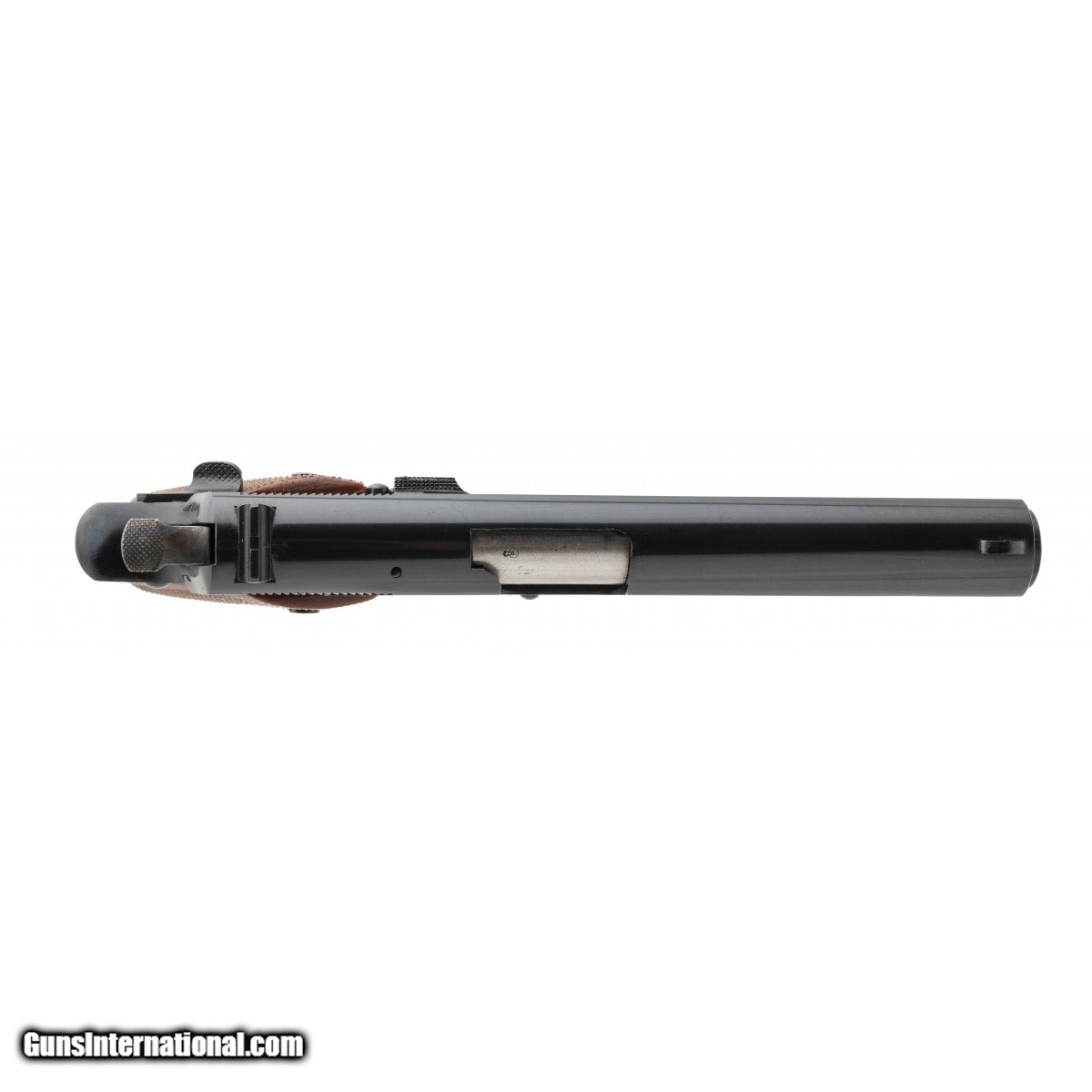 SN: 1133856. Made circa 1960's. 9mm with a 5"" barrel. Bore is excellent. Finish and grips are in very good condition finish has almost 100% of original bluing left. Comes with box. Overall condition is very good. Consignment.