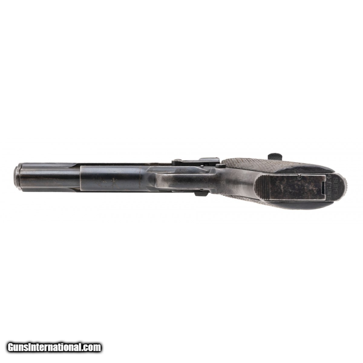Description: " SN:ET026969. Made in 1955. 9mm with a 5"" Barrel. Bore is in very good. Full size Spanish handgun. finish is in good condition with approximately 60% original bluing and spots of grayish brown patina. grips are in good condition with heavy handling wear. Overall condition is good. SOLD |