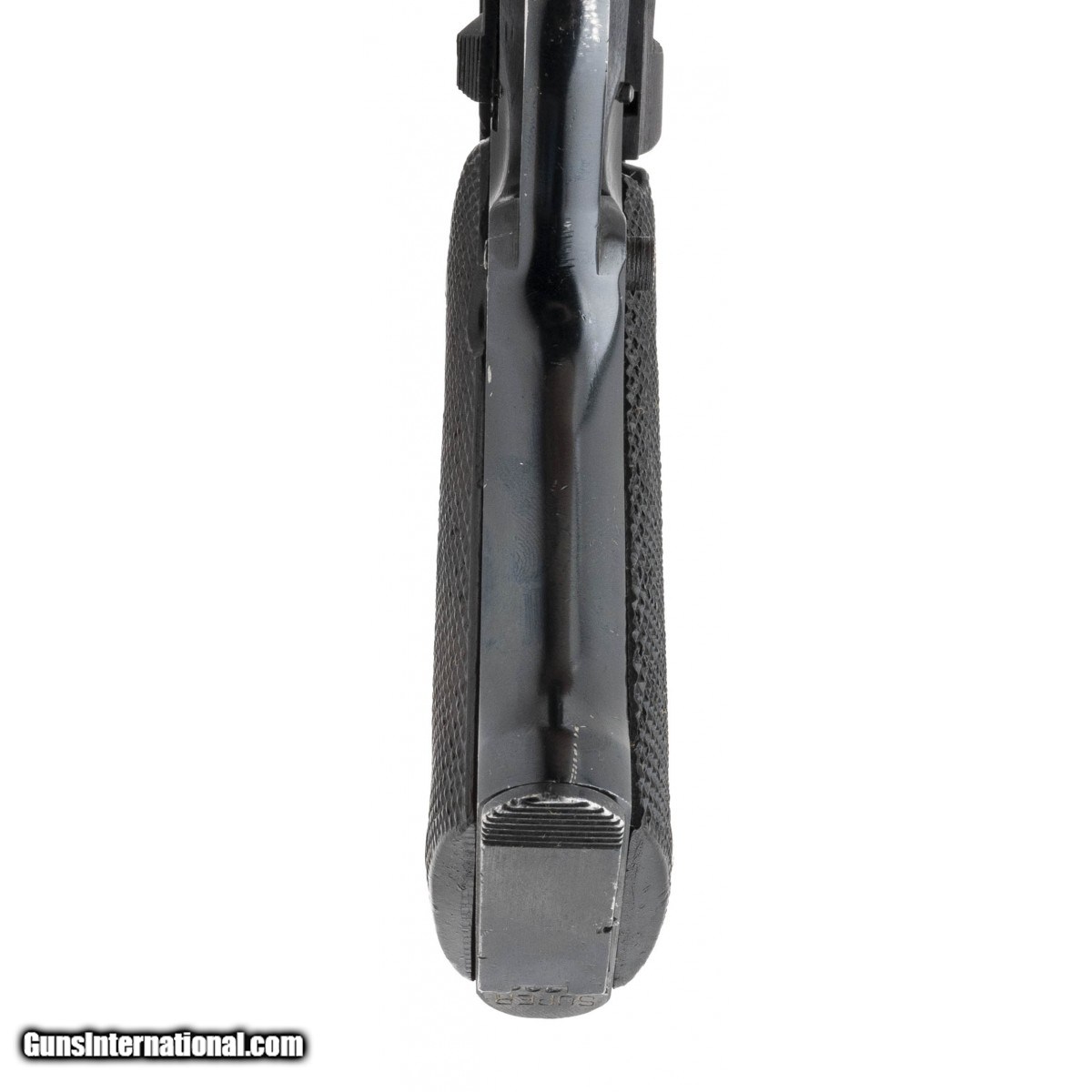 Description: "SN: 028735. 1960's vintage 9mm Largo with a 5"" barrel. Bore is very good. Full size service pistol in very good condition. Comes with box, tool and papers. (CONSIGNMENT) SOLD |