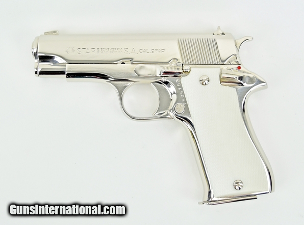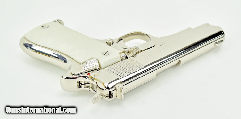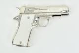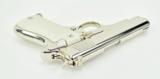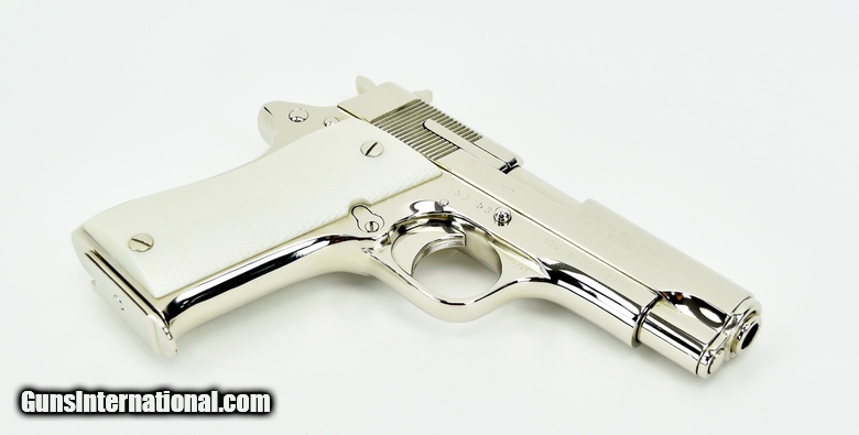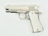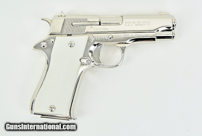 Description: Star BM 9mm caliber pistol. All steel model with custom nickel finish and fancy grips in excellent condition.