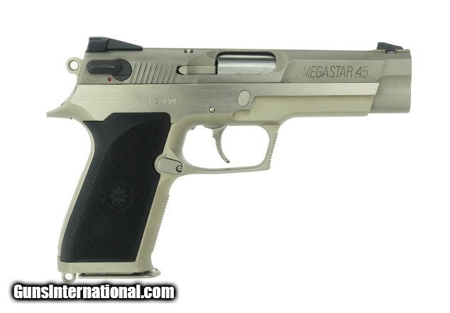 Description: Star Megastar .45 ACP caliber pistol. Extra-large all steel model with stainless finish. Excellent condition with box and magazine.