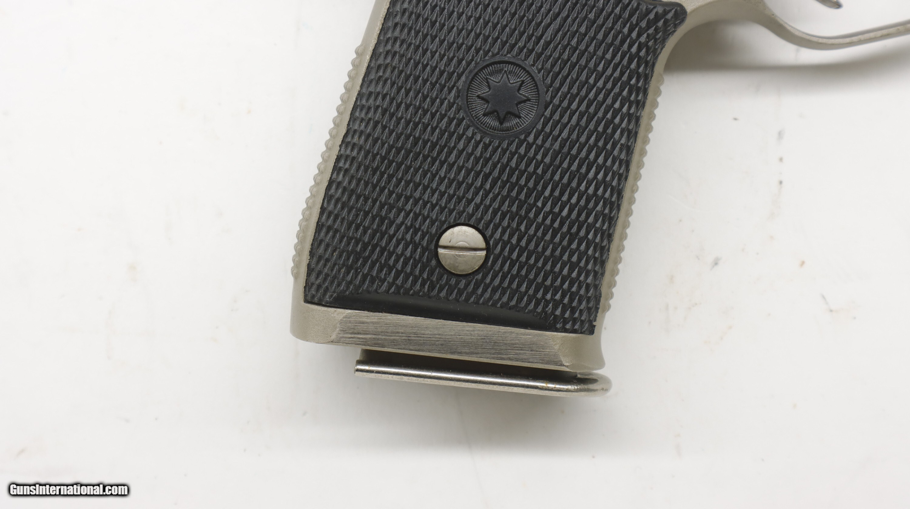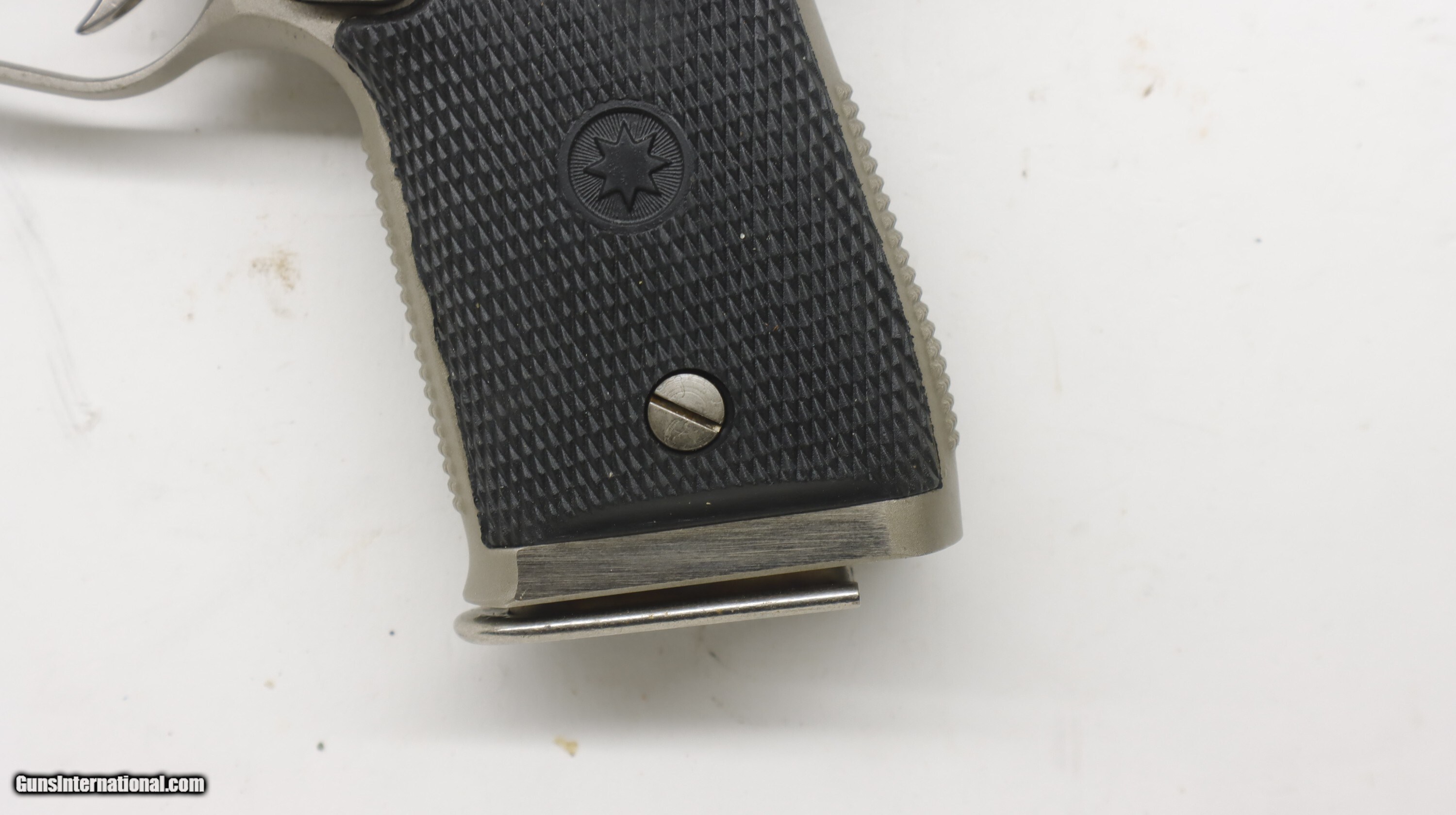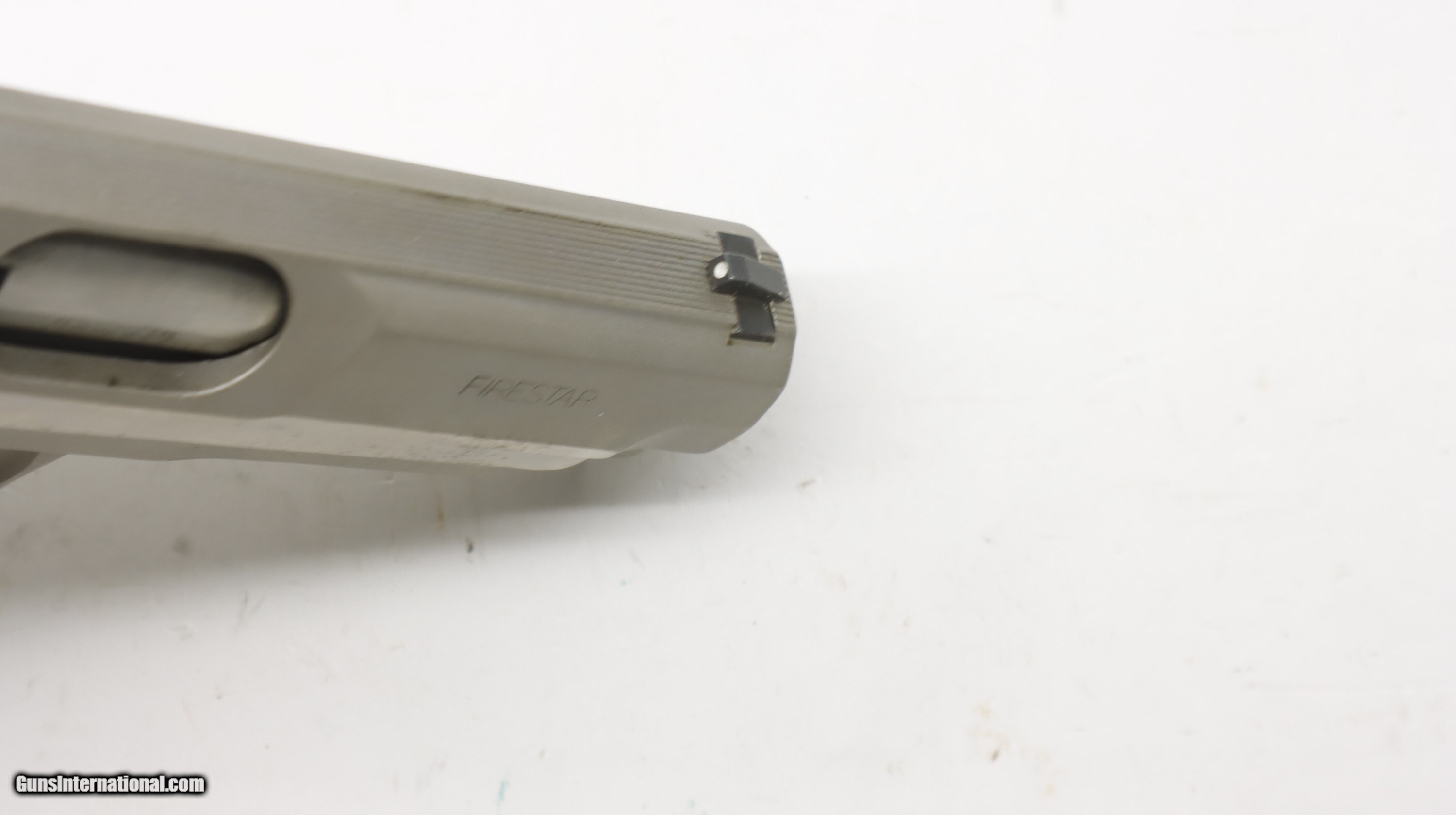 Description: Star Arms Firestar, Interamrs, Stainless finish, 9mm. SN is 20478xx. Gun is used but clean, just a few freckles as shown. Nice classic gun. We will trade for silver and gold coins and bars. We are an 07 dealer and deal in machine guns! Used guns might need a good cleaning to bring the gun up to your standards. We buy and trade for guns. All my guns (except layaway) come with a non-firing, 3 day unconditional return privilege, from the day UPS delivers to your dealer. Buyer pays shipping both ways if the gun comes back. Please make sure to make it to your FFL to inspect within the 3 days. We can hold until you know you can make to your dealer in your 3 day window. We accept personal check or any certified funds. We can also take your credit card, +3%. Email me if you would like these pictures sent to you, they will come through bigger and better than on the listing page here. We do offer Layaway. Our standard terms are 25% down, 90 days. Initial deposit is not refundable. Layaway guns do not have a return/inspection period. Email me with any questions. Please check your local laws to confirm it is legal to own in your state! Buyer pays $30 shipping and insurance to your FFL in the lower 48. AK, HI or PR is extra. I will ship to California, as long as it is legal, NO PROBLEM! I am a licensed FFL, and will include a copy of my FFL with the gun for your dealer’s records. I will ship to a C&R if the gun is eligible. I will ship to California, but you need to confirm the gun is legal where you are, California or other. WE BUY AND CONSIGN GUNS AND GUN COLLECTIONS! Will travel! We can do your machine guns! I am always looking for good clean, old original Winchesters to buy, consign, or trade, especially Pre '64's model 70's and model 54's. WE ALSO TRADE FOR CLASSIC CARS AND TRUCKS! We also trade for gold and silver. Handgun Caliber: 9x19mm Parabellum (9mm Luger, 9x19mm NATO) Manufacturer: Star Model: Firestar Condition: Used Price: $299.00 Contact Seller |