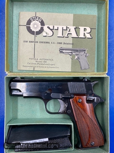 Description: Guns Listing ID: 500012 COMES IN ORIGINAL BOX W/ TWO MAGS AND ORIGINAL GRIPS SOLD Manufacturer: STAR Model: BM Caliber Info: 9MM Condition: Used - Non-Certified Barrels: 3.7 BARREL Finish: BLACK |