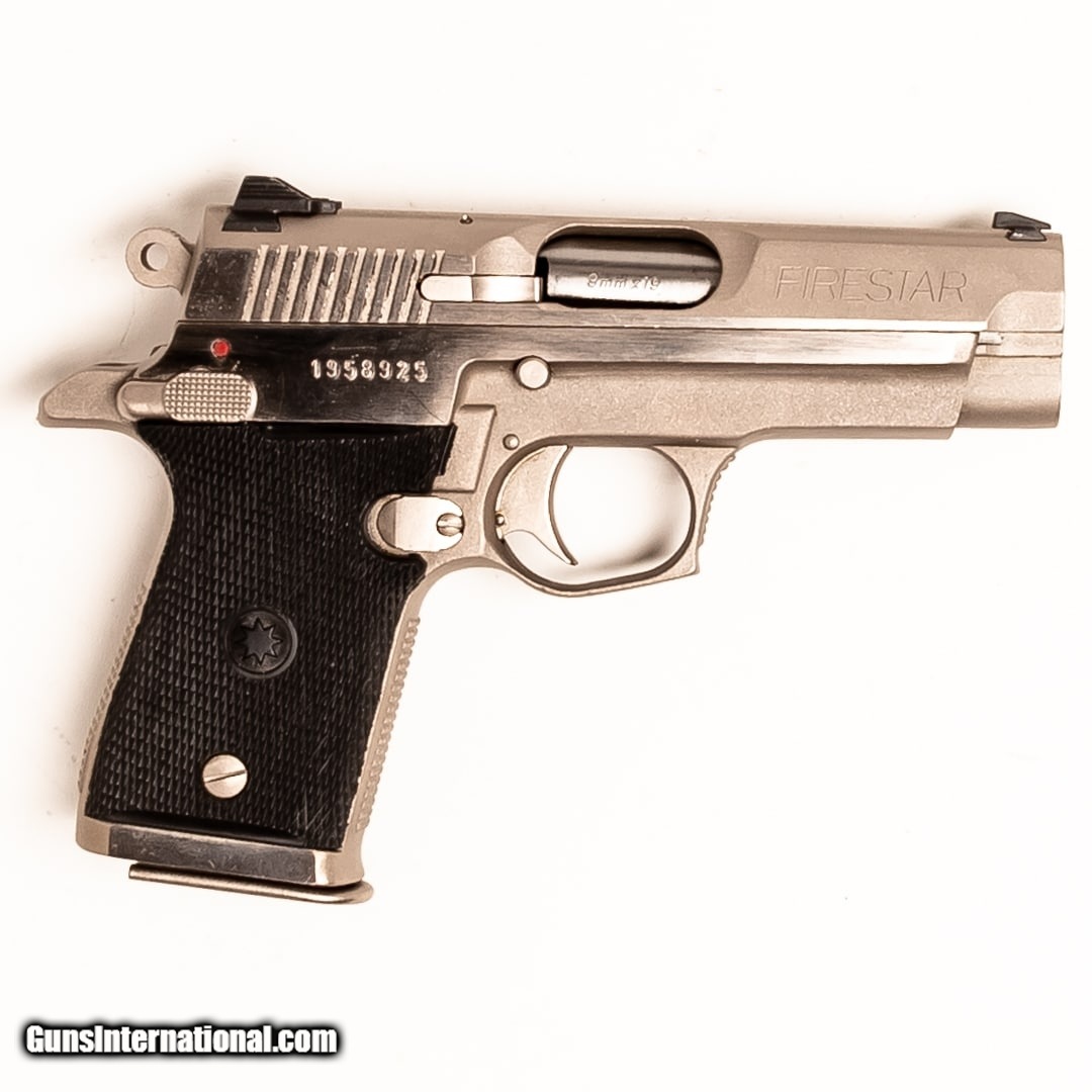 Description: Guns Listing ID: 569102 The Star Firestar is an all-metal semi-automatic handgun that is dependable and affordable. Ultra-compact, it‚‚s a fantastic option for home defense and personal protection. This Firestar has a magazine disconnect and includes the original case, manual, and one 7-round magazine. It‚‚s in excellent condition! Serial number: 1958925 SOLD Manufacturer: STAR, BONIFACIO ECHEVERRIA S.A. Model: FIRESTAR Caliber Info: 9MM LUGER Condition: Used - Certified Barrels: 3.3 BARREL Finish: STAINLESS |
