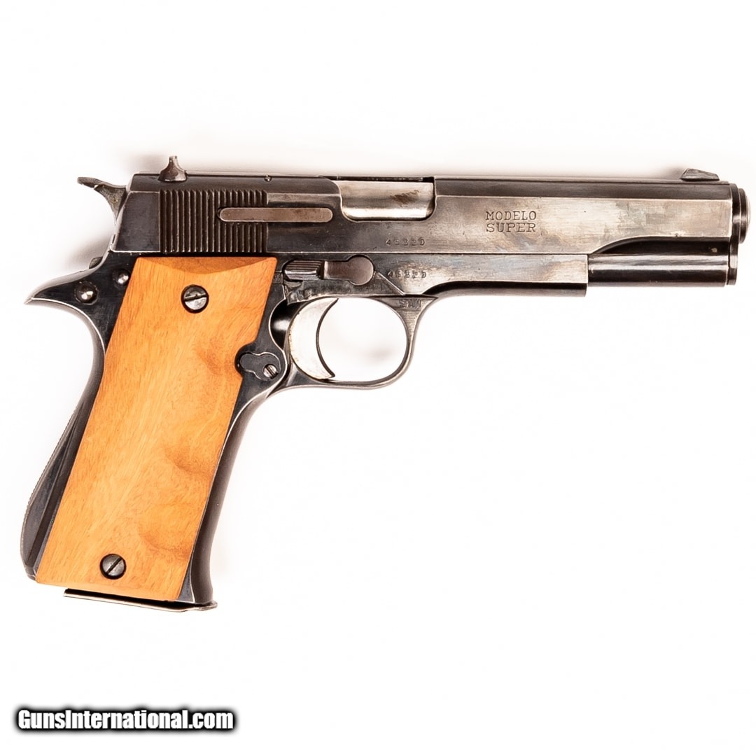 Description: Guns Listing ID: 408838 The Star Modelo Super B is a Spanish made pistol that is aesthetically and functionally similar to several Browning pistol designs. This version is chambered in 9mm Largo. 1-8 round magazine included. Serial number: 45320 SOLD Manufacturer: STAR BONIFACIO ECHEVERRIA, S.A. Model: MODELO SUPER B Caliber Info: 9MM LARGO Condition: Used - Certified Barrels: 5 BARREL Finish: BLACK |