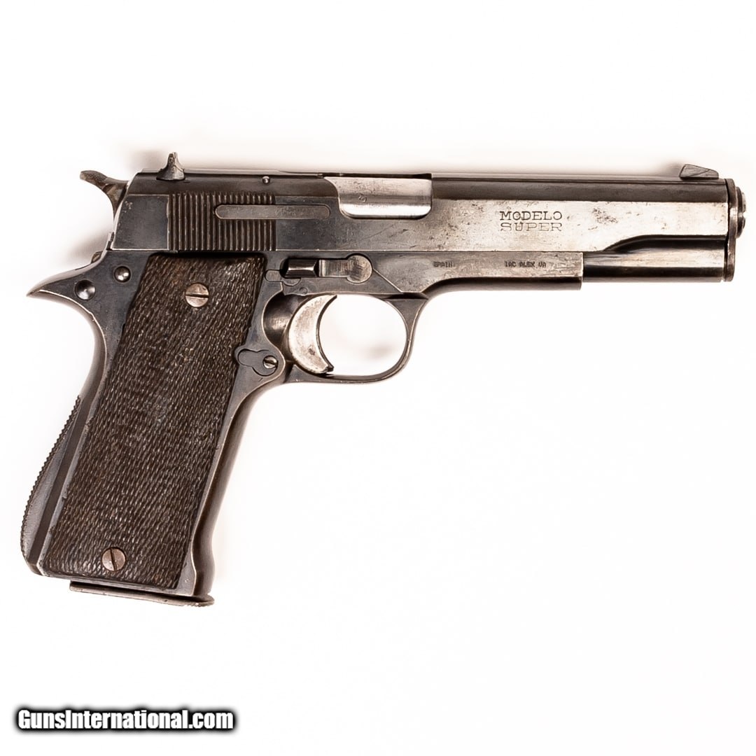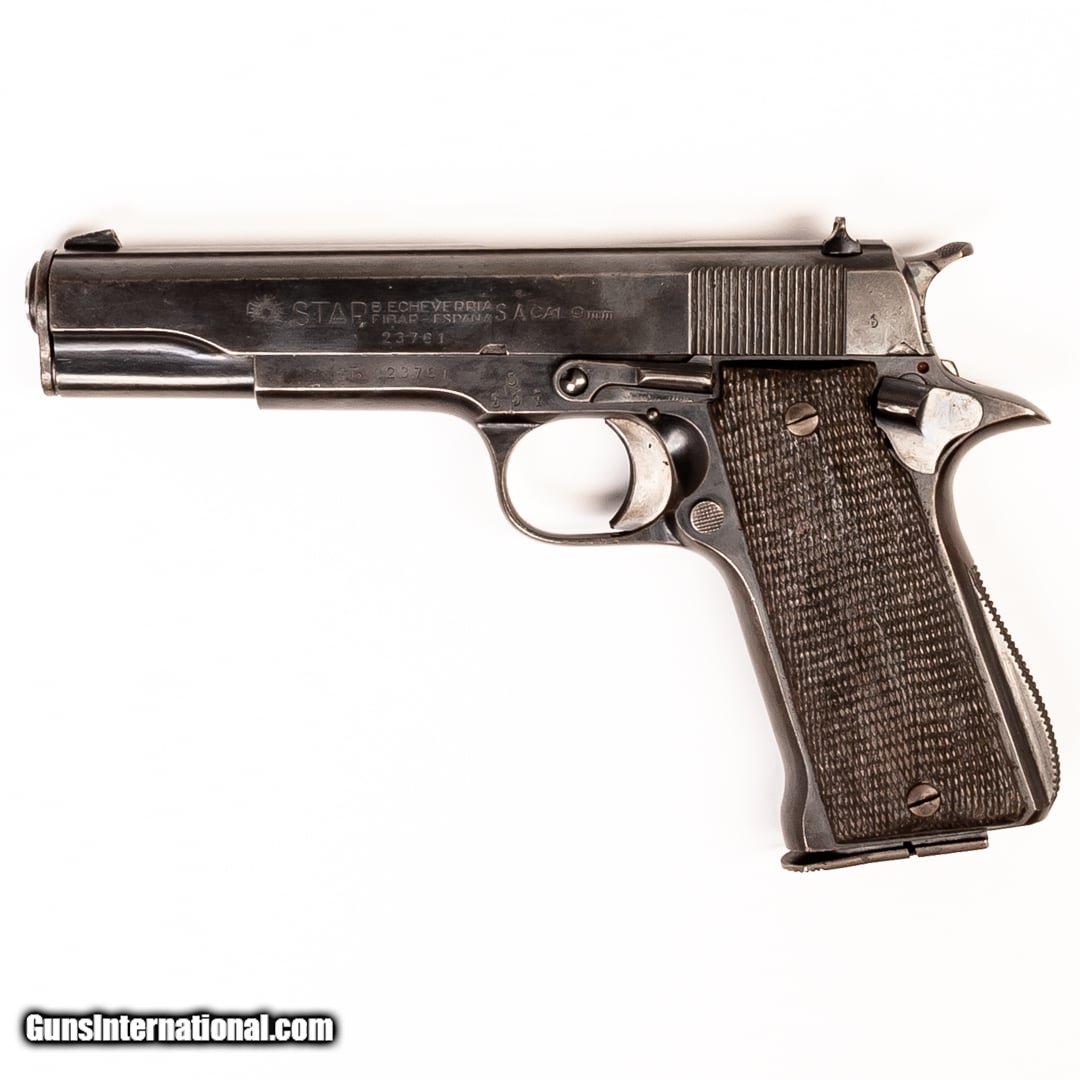 Description: Guns Listing ID: 408841 The Star Modelo Super is a Spanish made pistol that is aesthetically and functionally similar to several Browning pistol designs. This version is chambered in 9mm Largo. 1-8 round magazine included. Serial number: 023761 SOLD Manufacturer: STAR BONIFACIO ECHEVERRIA, S.A. Model: MODELO SUPER Caliber Info: 9MM LARGO Condition: Used - Certified Barrels: 5 BARREL Finish: BLACK |