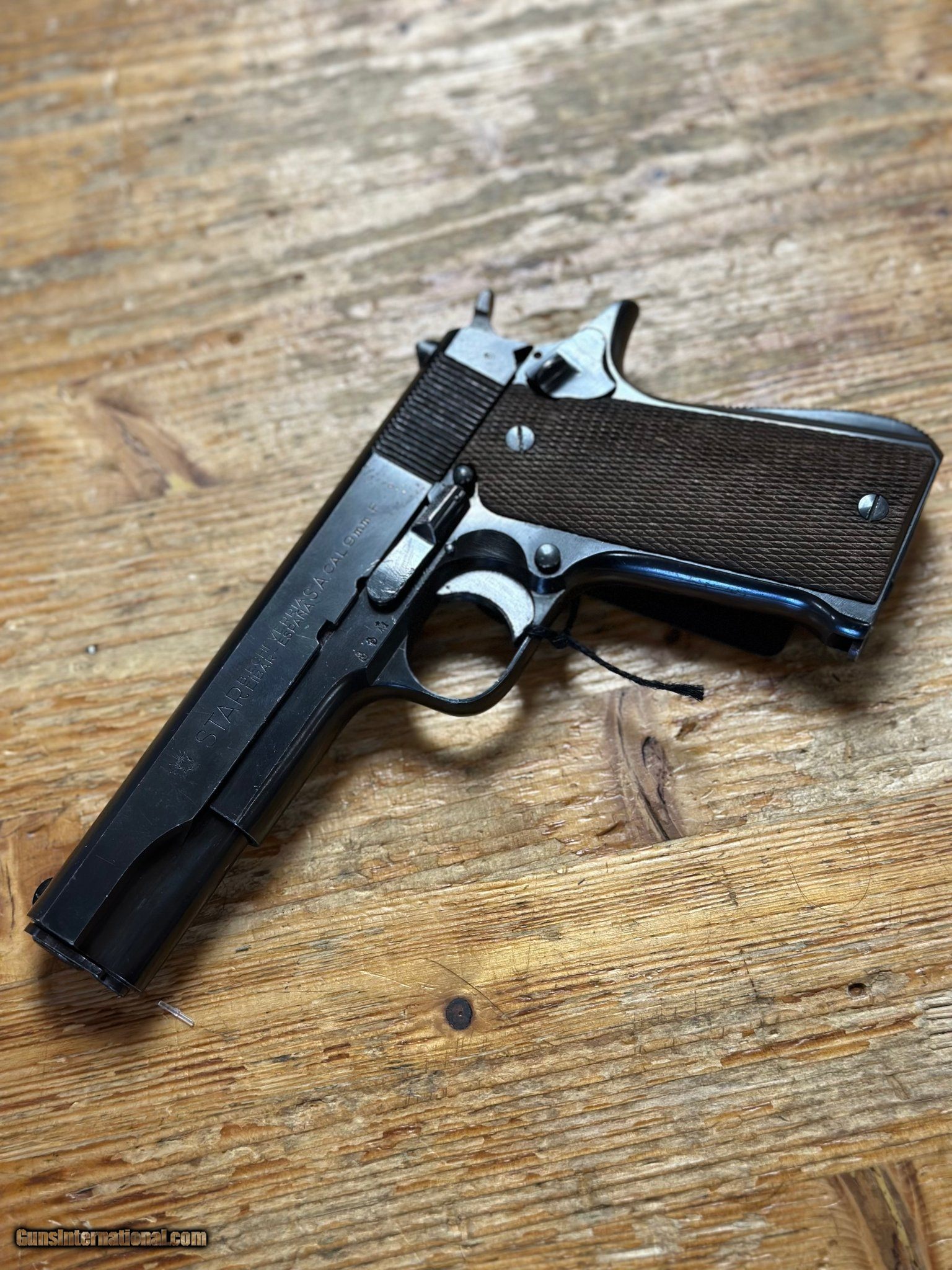 Description: Guns Listing ID: 534663 Firearm appears to be in good condition with normal signs of use and wear. Includes one magazine. No box. It’s basically a 9mm 1911 but different. And in ?????????????? SOLD Manufacturer: STAR Model: Model B Caliber Info: 9MM LUGER (9x19 PARA) Condition: Used - Non-Certified Barrels: 5 BARREL Action: SEMI AUTOMATIC Finish: blued |