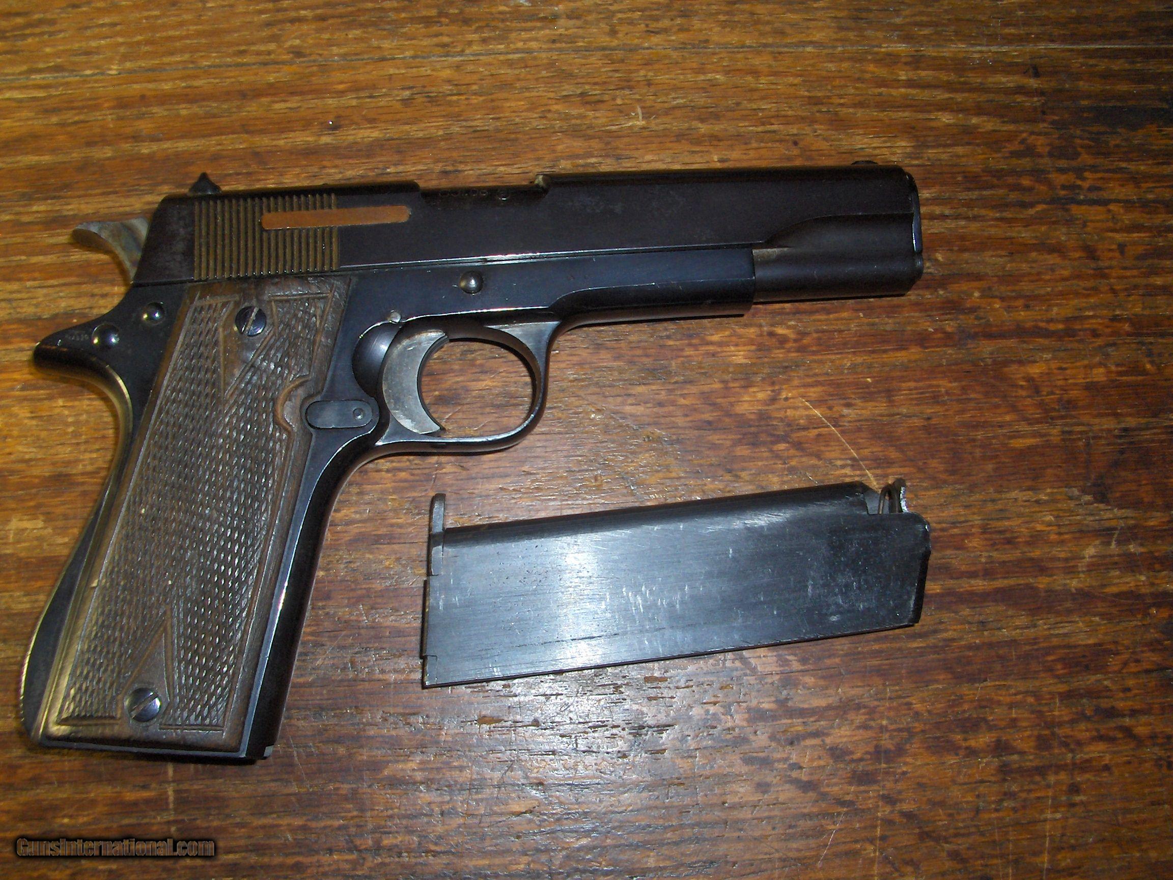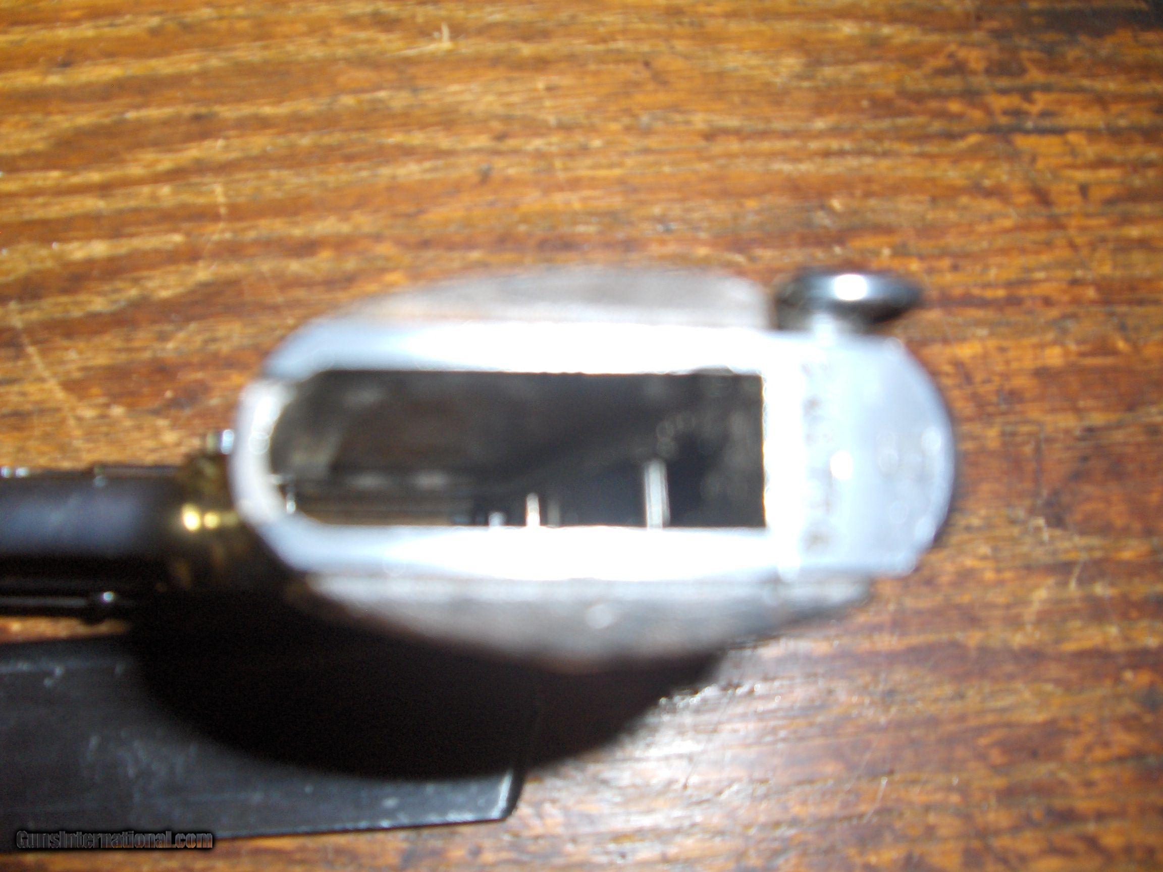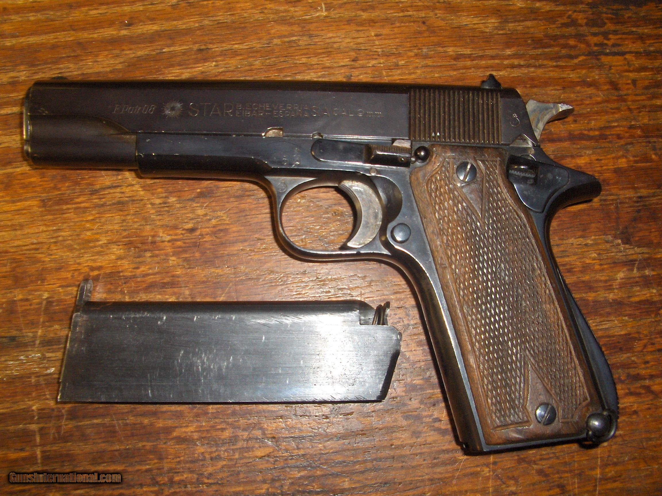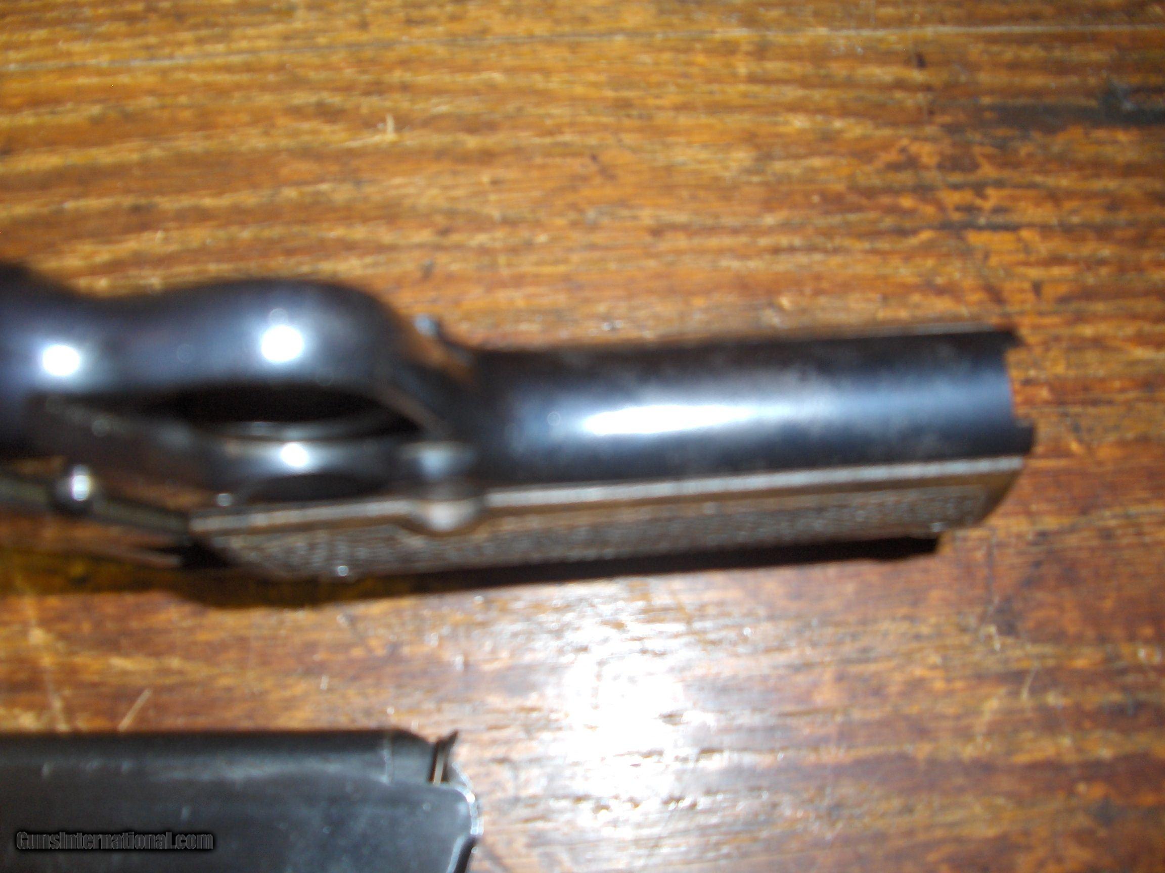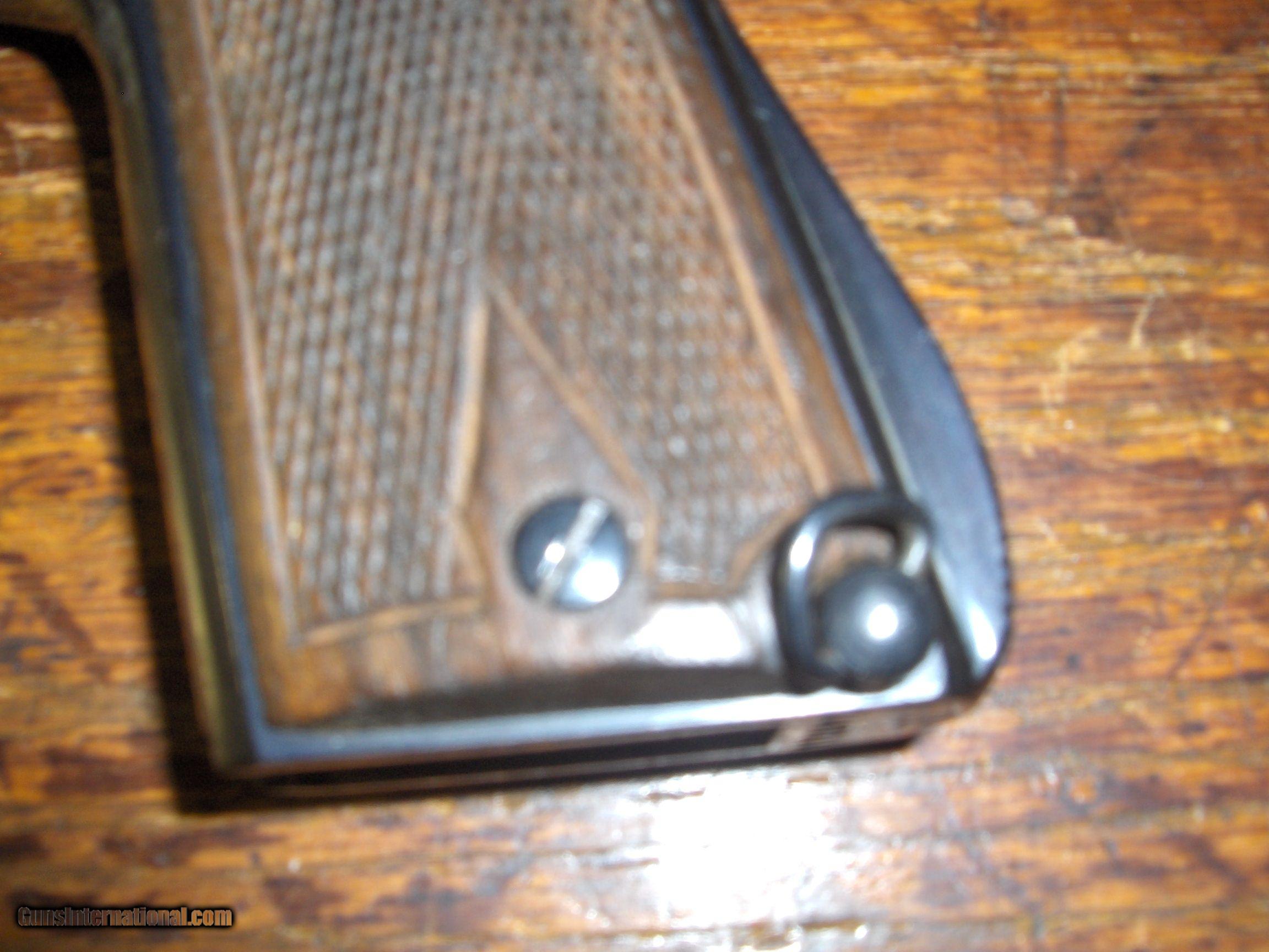 Description: Born in 1933 this Star is Waffen marked "WaAD20" on the left rear of the frame. Wooden grips ,lanyard loop. Grips are excellent as is blue. Mag follower hardly worn. Has ordnance bomb on trigger guard and on left rear of slide. Barrel marked "Cal 08" with ordnance bomb. Unable to get clear pics of markings but they are very clear on the gun. SOLD Curio/Relic: Yes |