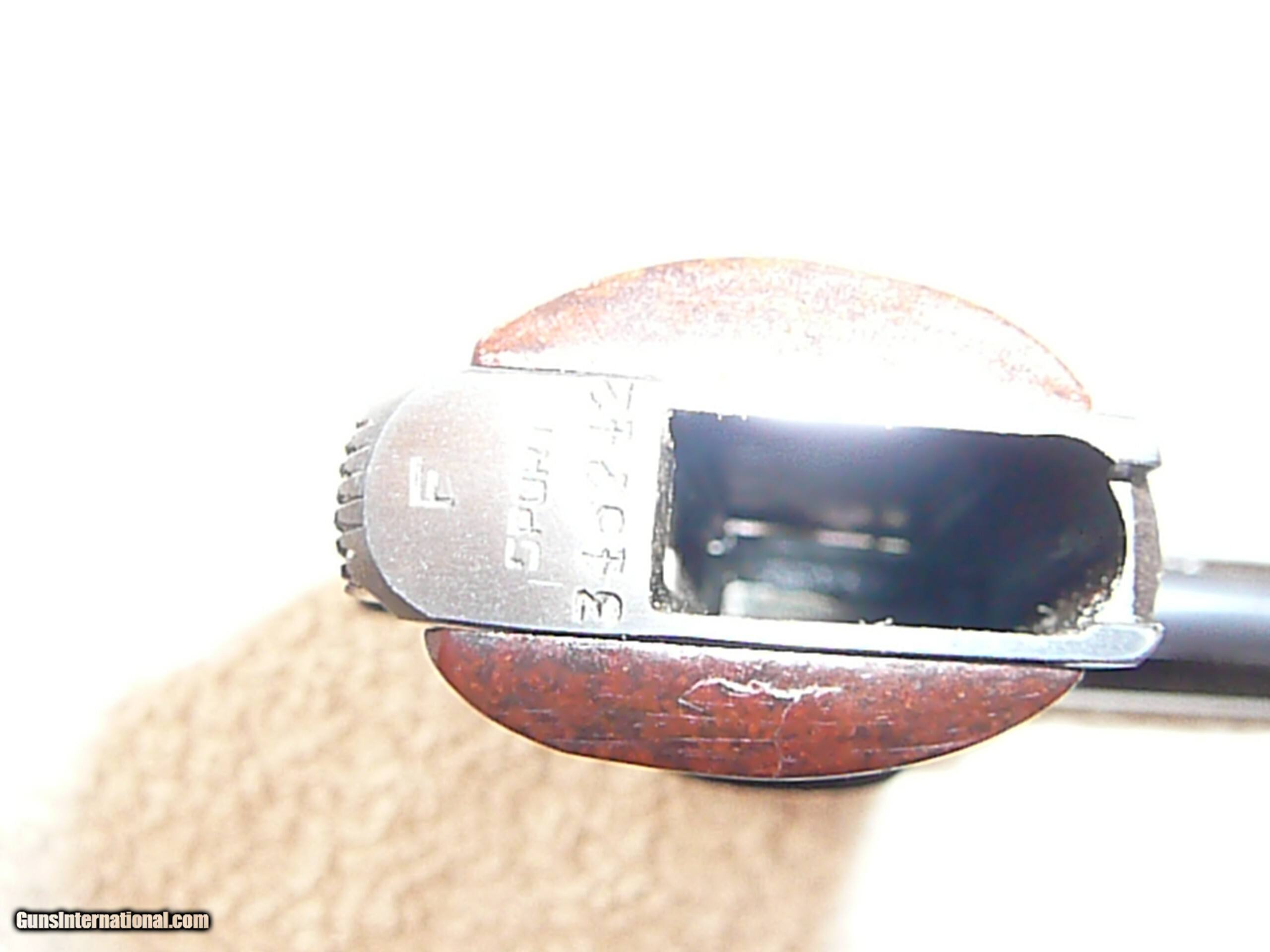 Description: HARD TO FIND EARLY STAR MODEL F SPORT, 22LR, 6" BARREL, SERIAL# 346242, NICE EXAMPLE, TEST FIRED ,OUT OF MY PERSONAL COLLECTION, $525.00 AND $75.00 INSURED SHIPPING TO YOUR FFL OR CURIO, DOUG 928 7323948 Curio/Relic: Yes Handgun Caliber: .22 Long Rifle Manufacturer: STAR Model: F SPORT Serial Number: 346242 Barrel Length: 6 Condition: VERY GOOD Metal Condition: GOOD Bore Condition: EXCELLENT Sights: ADJ Price: $525.00 Shipping: $75.00 Contact Seller |