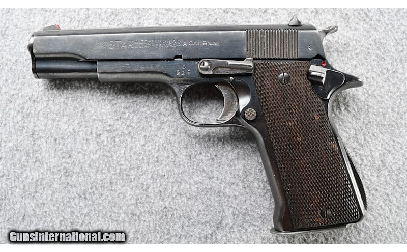 Description: Very good condition some bluing loss on the edges and has red paint on the front sight. Short-recoil operated, single-action only. 9mm Luger SOLD Chambers: 9mm in an eight round detachable magazine Metal Condition: Very good Bore Condition: Very good Barrels: 5 Weight: 32 oz Sights: Fixed iron front blade notch rear Item Location: Grand Junction, CO |
