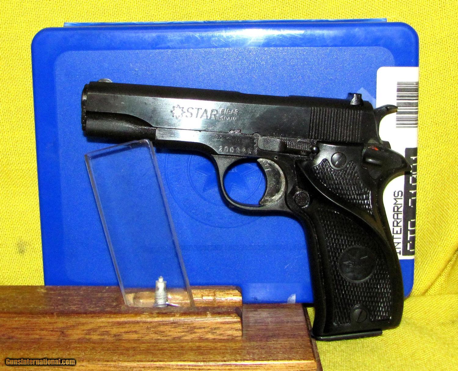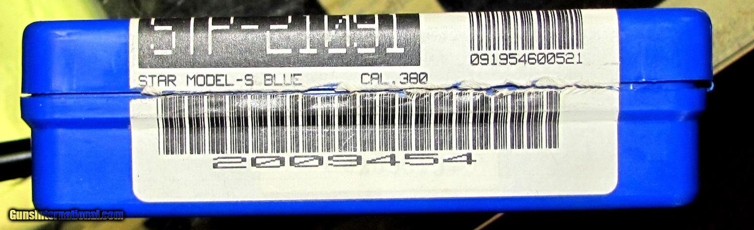 Description: STAR model S in .380 ACP CAL., with 4" barrel. Color BLUE. STAR MODEL S, MIRROR BORE, GRIPS EXCELLENT, 97% FACTORY FINISH, COMES WITH ONE TEN ROUND MAGAZINE, ORIGINAL BOX. OUR NEW STOCK # D31426 Condition 95%+. Serial number 2009454. SOLD |