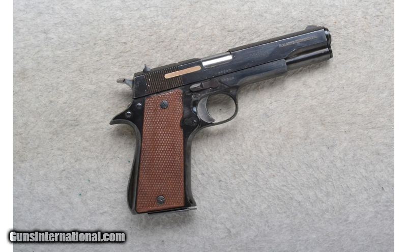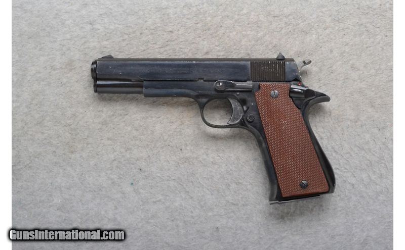 Description: This Star Model Super is a right hand semi-auto pistol in 9mm Cal. It has a 5 inch barrel with a rear serrated slide. A blade front sight and notch rear sight. The grip panels are a checkered hard brown plastic. 9mm Parabellum SOLD Chambers: 9 round magazine. Metal Condition: Fair. Has some light handling/use marks. Wood Condition: Checkered hard brown plastic grip handles. Bore Condition: Good. Barrels: 5 inch barrel with a rear serrated slide. Weight: 38 oz. Sights: Blade front. notch rear. Item Location: Richfield, WI |