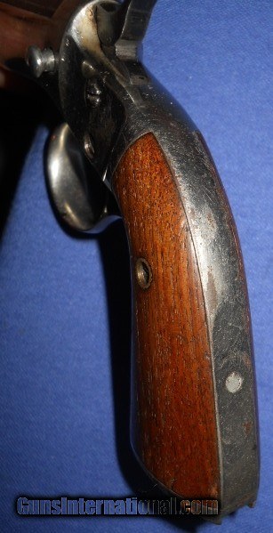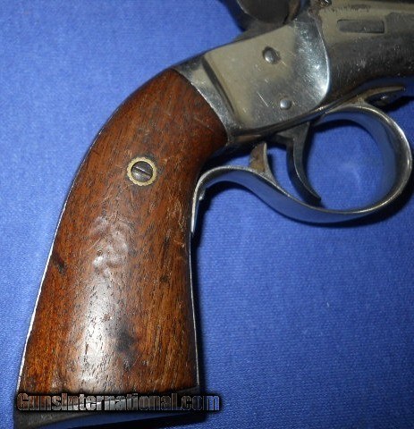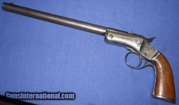 Description: .22 CALIBER STEVENS MODEL No. 40 POCKET RIFLE. 13 1/4" OVERALL, 10" BARREL, BORE HAS DISTINCT RIFLING WITH LIGHT PITTING. FRAME HAS ABOUT 95% ORIGINAL NICKLE FINISH WITH BARREL MOSTLY A SMOOTH GRAYISH PATINA. HAMMER & TRIGGER SHOW SOME REMAINING FIRE BLUE. WALNUT GRIPS RATE GOOD, FEW SMALL CHIPS & DINGS THAT CAN BE SEEN IN PICS. ACTION & EJECTOR FUNCTIONS FINE, CRISP WITH SOLID BARREL LOCKUP. NO STOCK. $25.00 S&H INCLUDES $200.00 INSURANCE DIRECT TO U.S. BUYER ANYWHERE THAT'S OK. SEE OTHER "ESTATE ANTIQUES" LISTINGS FOR MORE FROM COLLECTIONS & ESTATES. SOLD Antique: Yes Handgun Caliber: .22 Long Manufacturer: STEVENS Model: No. 40 Barrel Length: 10 Bore: DISTINCT RIFLING Ejectors: WORKING Condition: GOOD AS PICTURED Metal Condition: AGED Wood Condition: GOOD Bore Condition: GOOD SOME LIGHT PITTING Barrel Type: PART OCTAGON-ROUND Action: WORKING Finish: ORIGINAL AGED Weight: 1 lb 7 oz Sights: FACTORY ORIGINAL |