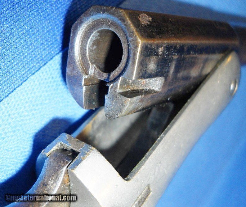 Description: ANTIQUE STEVENS NEW MODEL .32 RF CALIBER POCKET RIFLE WITH VERNIER TANG SIGHT. ONLY ABOUT 1500 OF THIS MODEL MADE. MATCHING SERIAL NUMBERS MFG. 1884-1896. PART ROUND PART OCTAGON 10" BARREL. ABOUT GOOD BORE THAT MAY CLEAN BETTER. BARREL ORIGINAL FINISH TONED TO A SMOOTH EVEN PLUM BROWN PATINA. FRAME 90% ORIGINAL NICKLE FINISH, FEW SCRATCHES & HANDLING MARKS. STOCK 99% BRIGHT NICKLE FINISH THAT MAY HAVE NEVER BEEN USED or REDONE AT SOME POINT ? FINE ROSEWOOD ORIGINAL FINISH GRIPS SHOW LIGHT WEAR WITH MINIMAL HANDLING MARKS. FEATURES ORIGINAL VERNIER ELEVATION ADJUSTABLE TANG SIGHT. ACTION IS CRISP WITH 2 CLICK HAMMER MISSING EXTRACTOR, AS PICTURED. SE MY OTHER POCKET RIFLES AND ALL ESTATE ANTIQUES LISTINGS FOR MORE GOODIES AT SENSIBLE PRICES.. ANTIQUE SHIPS DIRECT TO BUYER ANYWHERE THAT'S OK. NO C&R or FFL LICENSE REQUIRED $25.00 S&H PRIORITY INSURED. SOLD Antique: Yes Manufacturer: STEVENS Model: VERNIER NEW MODEL Serial Number: 2183 MATCHING Caliber Info: .32 RF Bore: ABOUT GOOD Condition: VERY GOOD Metal Condition: 90% + Wood Condition: FINE Bore Condition: GOOD Finish: ORIGINAL Manufacture Date: 1884-1896 |