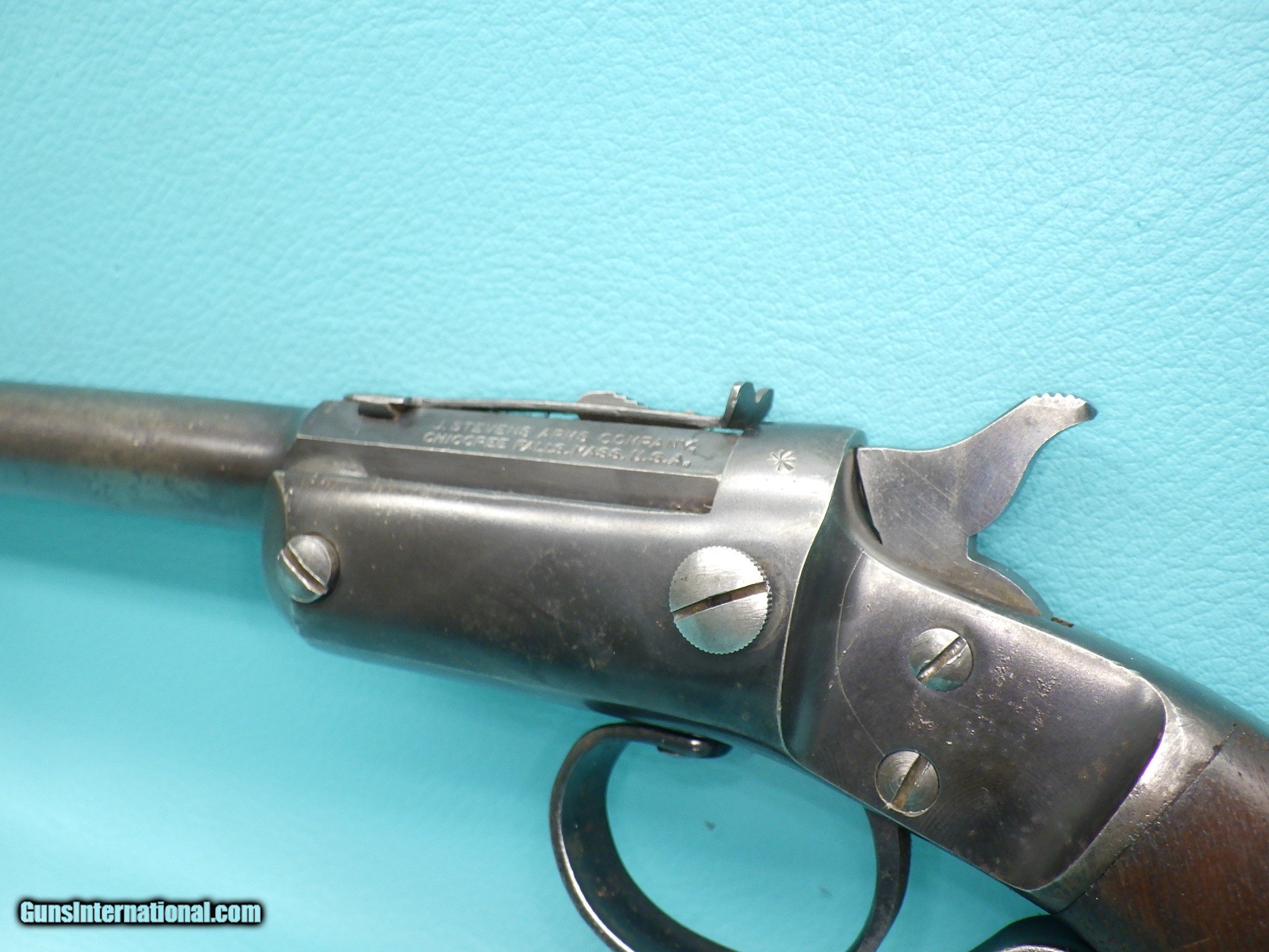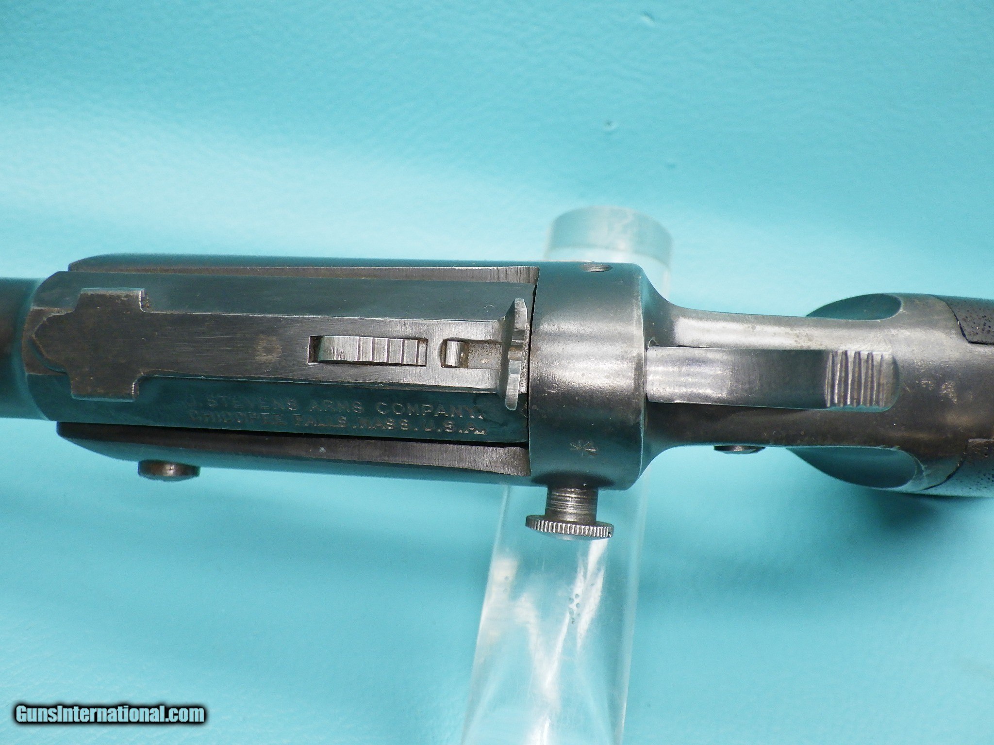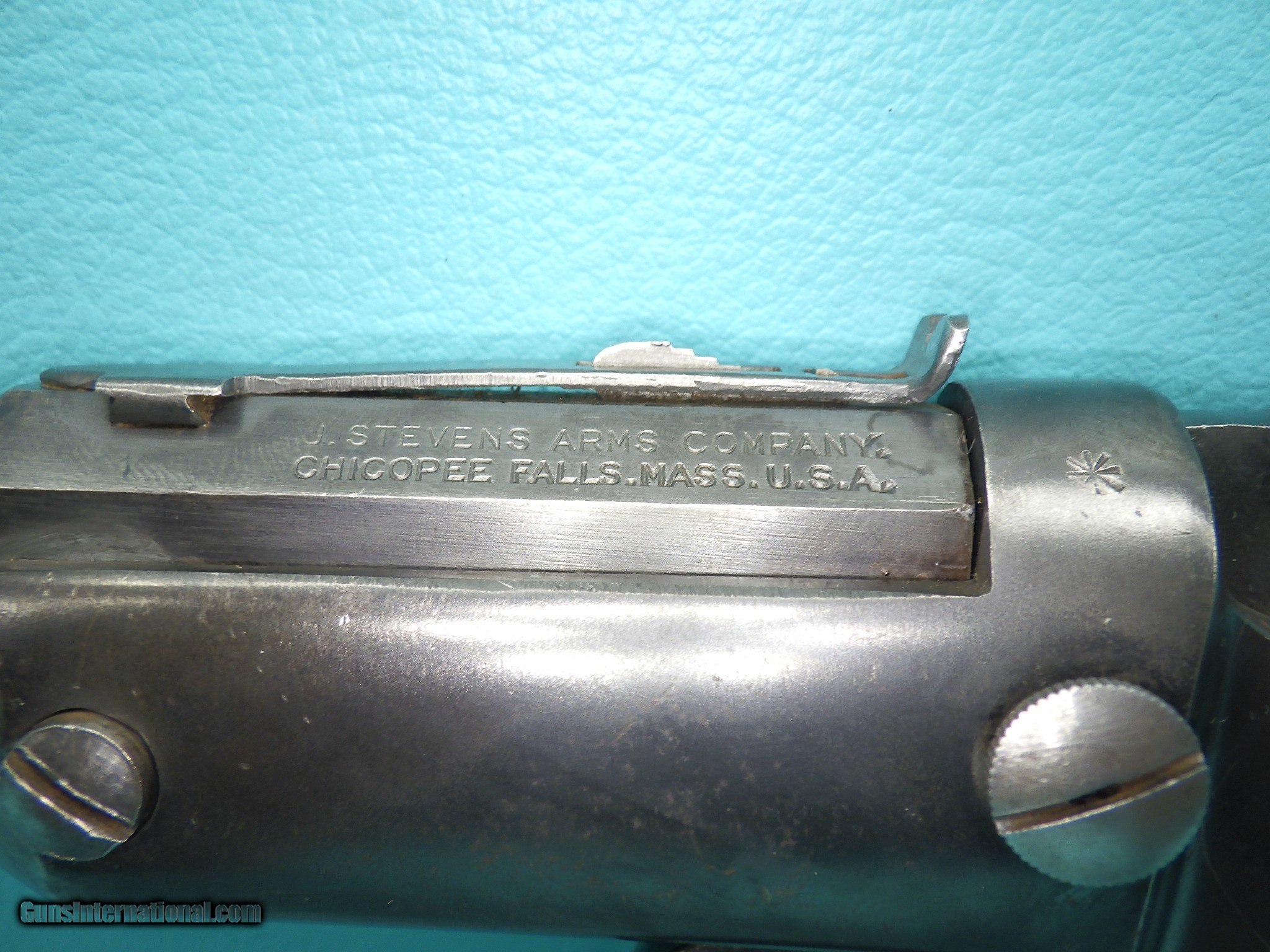 Description: **SOLD** Make: J Stevens Arms Company Model: NO.35 Target Finish: Blued Caliber: .22LR Action: Single shot Barrel length: 6 inch Bore: Shiny with sharp rifling Grips: Walnut Sights: Adjustable rear with Lyman post front MFG Date: 1907-1939 Features: Tip up barrel with extractor, exposed hammer, part octagon barrel, iron frame, and weighted butt cap. Extras: None Condition: Nice shape for the age with some minor loss and signs of light use. Shipping Cost: $25.00 The pistol functions as it should. Please refer to the photos for the overall condition. FFL is required. No handgun sales in MA.**SOLD** SOLD Handgun Caliber: .22 Long Rifle Manufacturer: J Stevens Model: NO.35 Target Serial Number: 19787 Barrel Length: 6 |