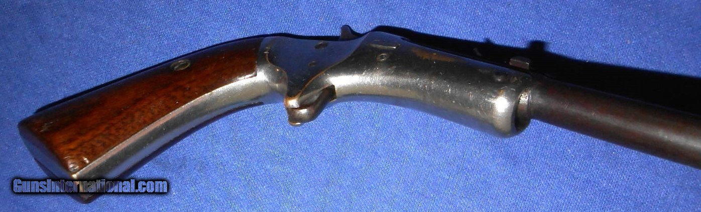Description: ANTIQUE FIRST ISSUE STEVENS MODEL 43 DIAMOND TIP-UP SINGLE SHOT .22 S,L,LR CALIBER PISTOL. 6" PART OCTAGON PART ROUND BARREL. BORE HAS VISIABLE RIFLING WITH ROUGHNESS. BLUED BARREL, CASE COLOR HAMMER & TRIGGER, NICKLE FRAME WITH DINGS & FINISH LOSS MOSTLY ON THE RIGHT SIDE. BARREL HAS TONED TO A DEEP BROWNISH COLOR FITTED WITH HOODED POST FRONT & V-NOTCH REAR SIGHTS. WALNUT GRIPS IN VERY GOOD CONDITION SHOWING LIGHT WEAR & HANDLING. ACTION WORKS PROPERLY CRISP & TIGHT WITH 2 CLICK HAMMER. $18.00 S&H DIRECT TO BUYER ANYWHERE THAT'S OK NO LICENSE NEEDED. ALSO TO LICENSED C&R COLLECTOR or FFL IF NECESSARY. CHECK YOUR LOCAL & STATE LAWS BEFORE BUYING. SOLD Antique: Yes Handgun Caliber: .22 Long Rifle Manufacturer: STEVENS Model: STEVENS 43 DIAMOND Barrel Length: 6 Bore: VISIABLE RIFLING Chambers: CLEAR Ejectors: WORKING Condition: VERY GOOD Metal Condition: AS PICTURED Wood Condition: AS PICTURED Bore Condition: WORN Barrel Type: ROUND Action: CRISP & TIGHT Finish: AGED PATINA Weight: 9.3 oz Sights: FACTORY Manufacture Date: 1886-1896 |