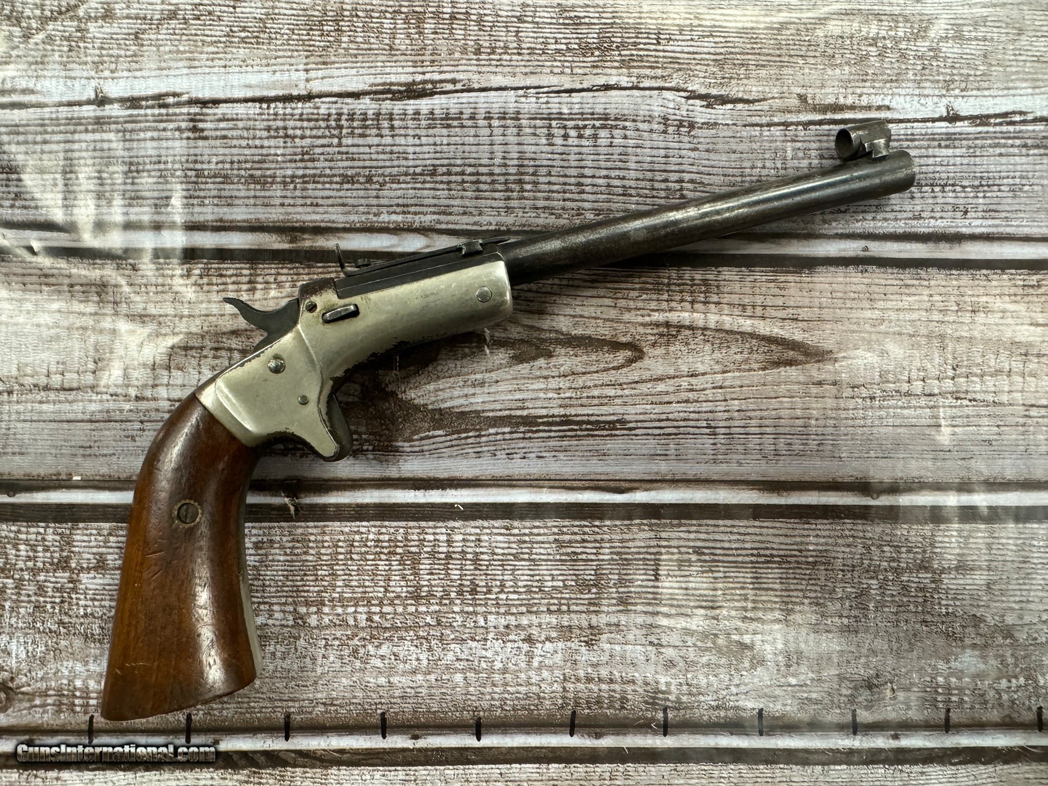Description: Guns Listing ID: 1225314 This J. Stevens single shot .22 caliber pistol is a piece of history and is in functioning condition. SOLD Manufacturer: J STEVENS A&T CO. Model: 43 Caliber Info: .22 CAL Condition: Used - Non-Certified Barrels: 6 BARREL Finish: BLACK WITH WOOD GRIP |