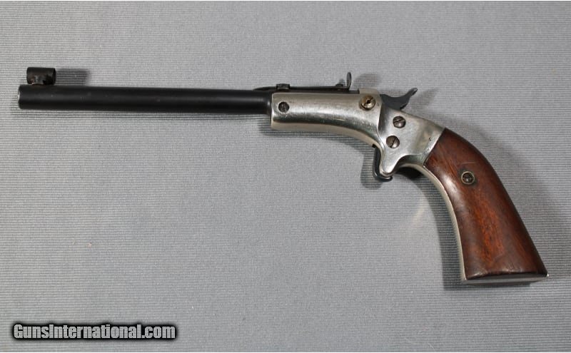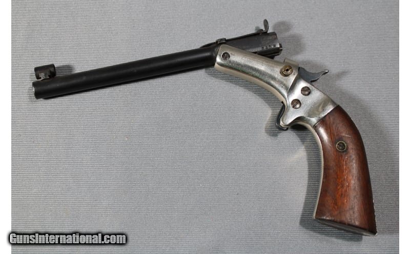 Description: J. Stevens No. 43 Tip up .22 caliber rimfire single shot. 6" blued barrel. Finish is good for the age of the pistol. .22 Long Rifle SOLD Metal Condition: good Wood Condition: good Bore Condition: bright Barrels: 6" barrel Item Location: Council Bluffs, IA |
