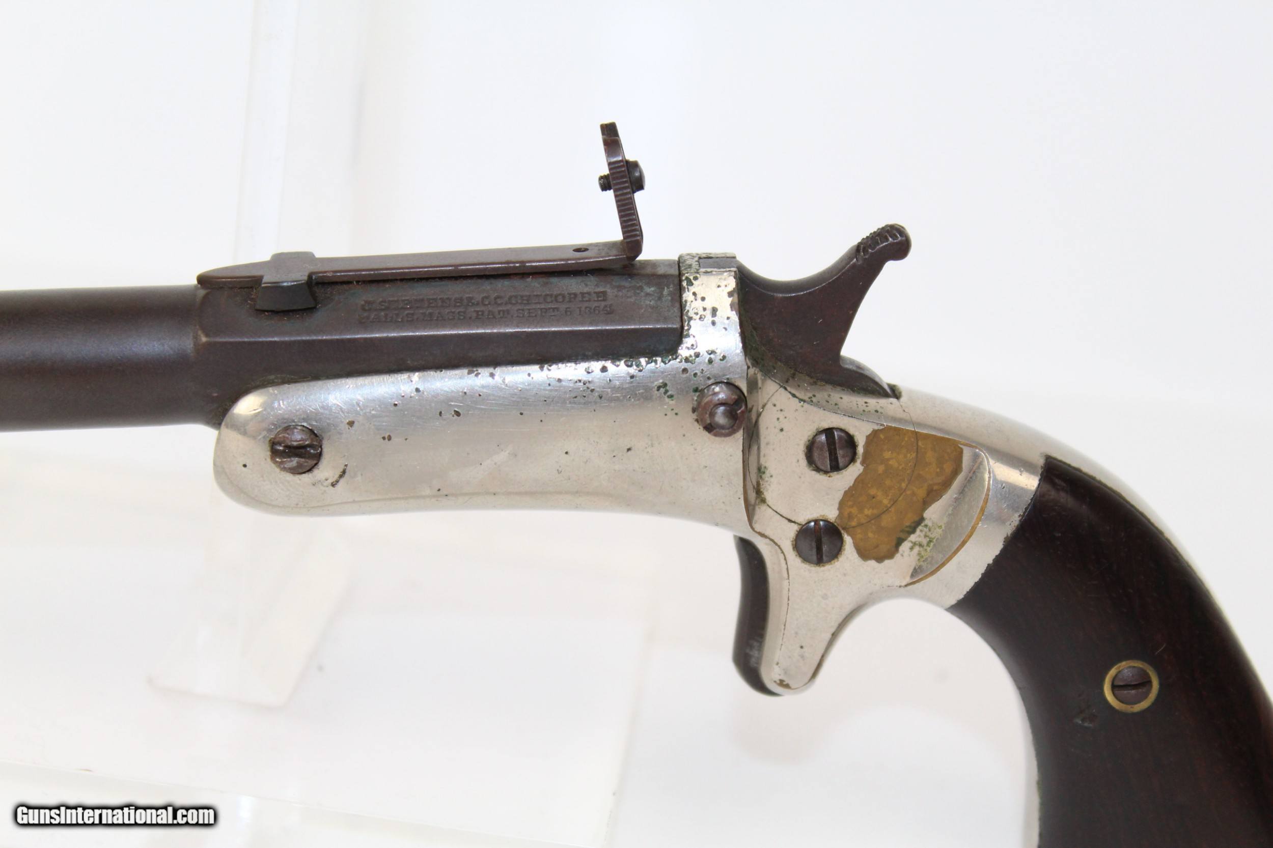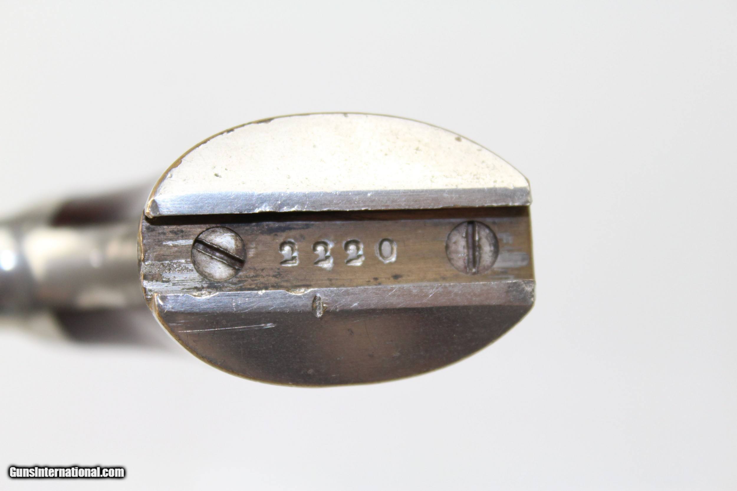 Description: LONG-BARRELED Antique STEVENS “Pocket Rifle” In Rare .30 Rimfire Chambering Here we present an antique J. Stevens & Company Pocket Rifle, manufactured circa 1872 in Chicopee Falls, Massachusetts. About 8,000 were produced, this one in rare .30 Rimfire. This pistol was considered one of the most accurate target pistols of the day and would have originally come with an attachable wire stock. It features a 15-1/8-inch bull barrel and a weighted pommel for balance. There is also a spur for the middle finger on the trigger guard. The action is single action only with a crisp trigger. The left side of the barrel is marked “J.STEVENS&CO.CHICOPEE/FALLS MASS.PAT.SEPT.6.1864”. The overall condition is good. The blue barrel has turned a nice plum patina. The nickel frame has 80% of its original finish. The markings are clear and legible. Serial numbers match. The grips are in great shape. The bore is dark and nearly smooth. The action on this rifle is strong. Extractor is absent. Own the original! This is a legitimate antique and not a reproduction. Barrel is 15-1/8 inches. Caliber: .30 Rimfire Overall condition as seen in photos. Very Fast. Very Safe. FREE SHIPPING WORLDWIDE. Delivered directly to your door by express mail! Guaranteed AUTHENTIC & Includes CERTIFICATE OF AUTHENTICITY. ancestryguns $600 #7084 SOLD Antique: Yes |