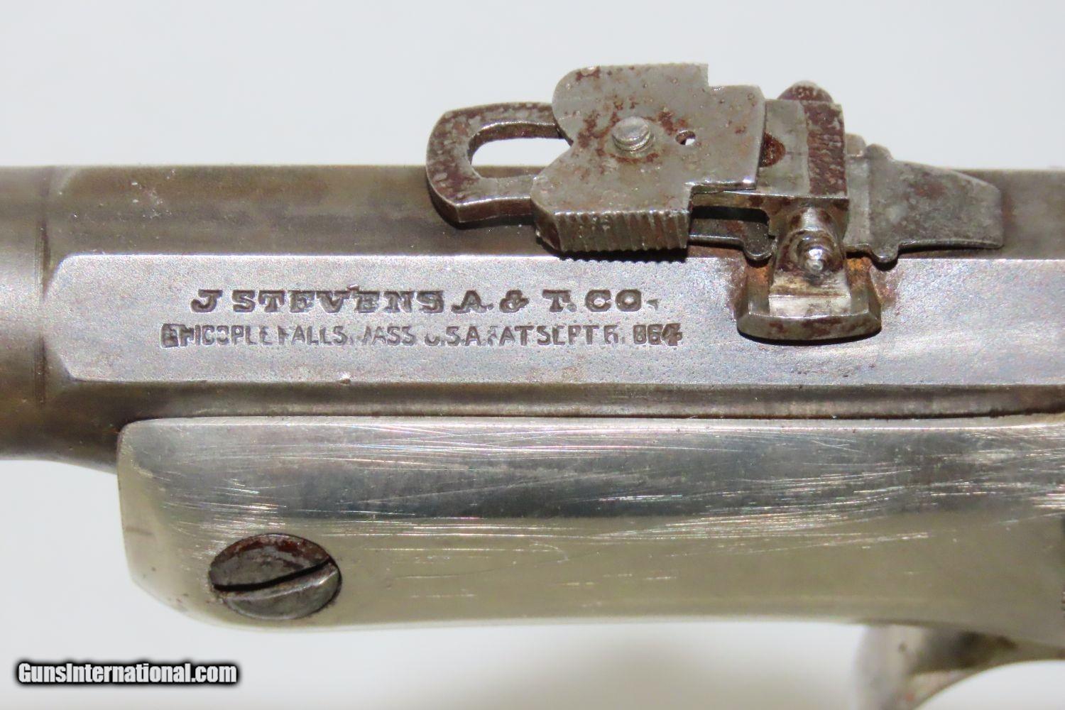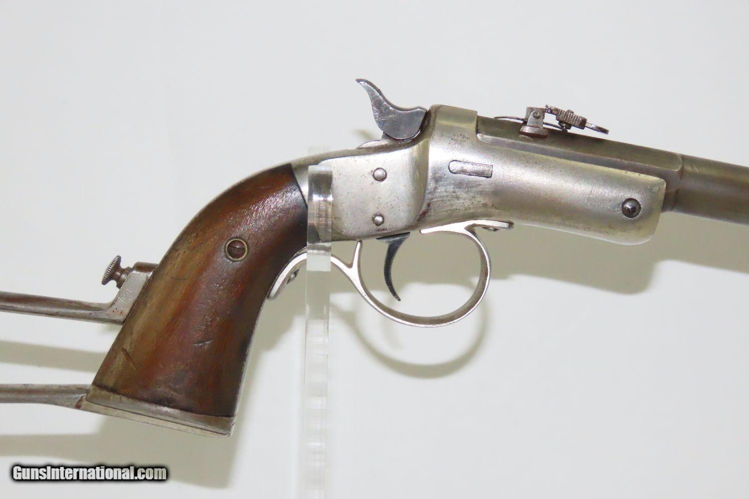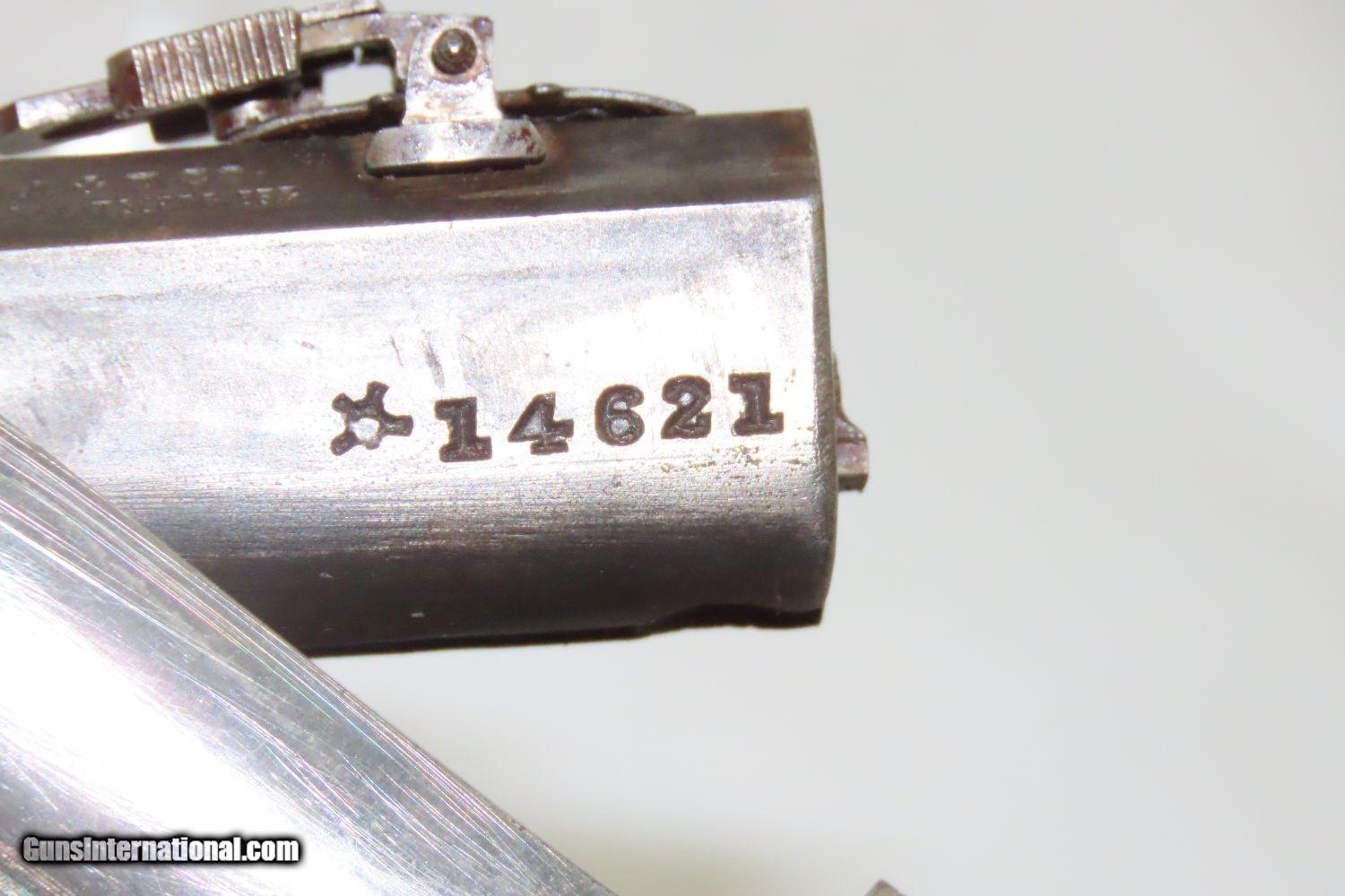 Description: LONG-BARRELED J. STEVENS ARMS Company New Model Number 40 C&R POCKET RIFLE Single Shot with Matching Number Shoulder Stock! Here we present a C&R J. Stevens Arms Company New Model Number 40 Pocket Rifle, manufactured around the turn of the century in Chicopee Falls, Massachusetts. About 15,000 of these pocket rifles were produced between 1896 and 1916. This pistol was considered one of the most accurate target pistols of the day and comes with the original matching numbers attachable wire stock. It features a 12-inch, part-octagonal bull barrel and a weighted pommel for balance. The action is single action only with a crisp trigger. The overall condition is very good. The action is strong. The bore is semi-bright and in good shape. The finish on the barrel is blue and has matured to a smooth gray patina. The numbers on the frame and stock match. Here is a nice pocket rifle from Stevens to collect or display. This firearm is classified as a Curio & Relic. Barrel is 12 inches. Caliber: .22 Rimfire Overall condition as seen in photos. Very Fast. Very Safe. FREE SHIPPING. Will need to be sent to your local FFL or C&R licensee. This firearm is classified as a Curio & Relic. Guaranteed AUTHENTIC & Includes CERTIFICATE OF AUTHENTICITY. ancestryguns $1295 #20488 SOLD Curio/Relic: Yes |