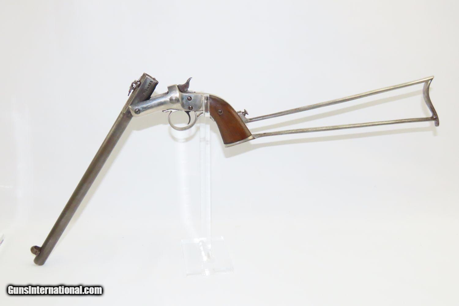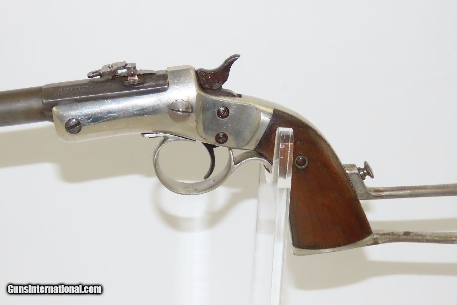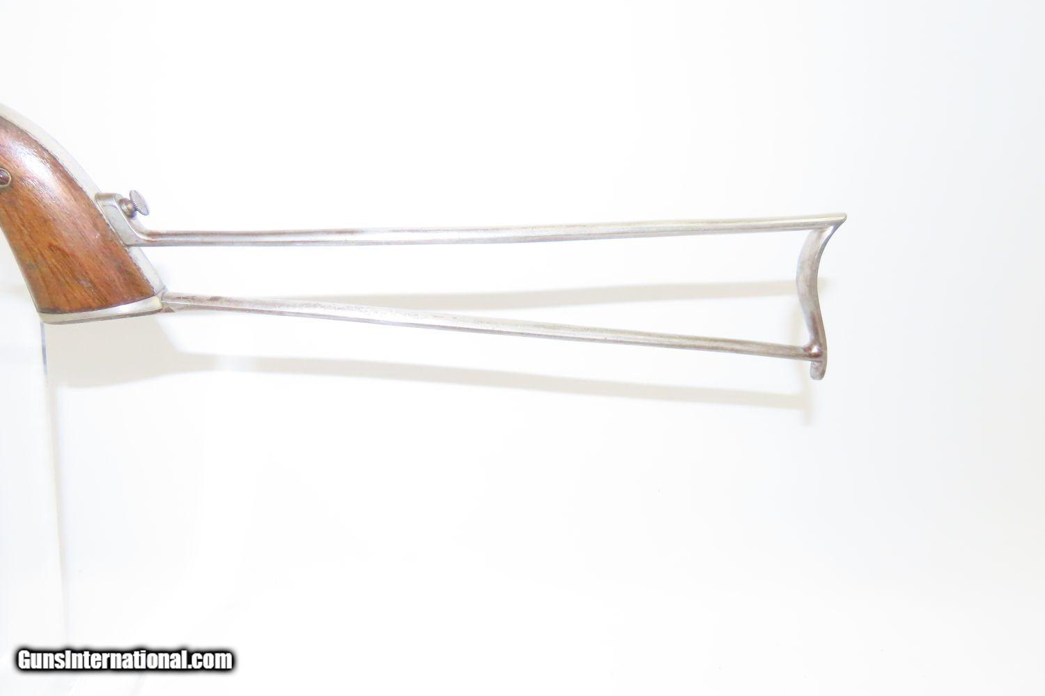 Description: LONG-BARRELED J. STEVENS ARMS Company New Model Number 40 C&R POCKET RIFLE Single Shot with Matching Number Shoulder Stock! Here we present a C&R J. Stevens Arms Company New Model Number 40 Pocket Rifle, manufactured around the turn of the century in Chicopee Falls, Massachusetts. About 15,000 of these pocket rifles were produced between 1896 and 1916. This pistol was considered one of the most accurate target pistols of the day and comes with the original matching numbers attachable wire stock. It features a 12-inch, part-octagonal bull barrel and a weighted pommel for balance. The action is single action only with a crisp trigger. The overall condition is very good. The action is strong. The bore is semi-bright and in good shape. The finish on the barrel is blue and has matured to a smooth gray patina. The numbers on the frame and stock match. Here is a nice pocket rifle from Stevens to collect or display. This firearm is classified as a Curio & Relic. Barrel is 12 inches. Caliber: .22 Rimfire Overall condition as seen in photos. Very Fast. Very Safe. FREE SHIPPING. Will need to be sent to your local FFL or C&R licensee. This firearm is classified as a Curio & Relic. Guaranteed AUTHENTIC & Includes CERTIFICATE OF AUTHENTICITY. ancestryguns $1295 #20488 SOLD Curio/Relic: Yes |