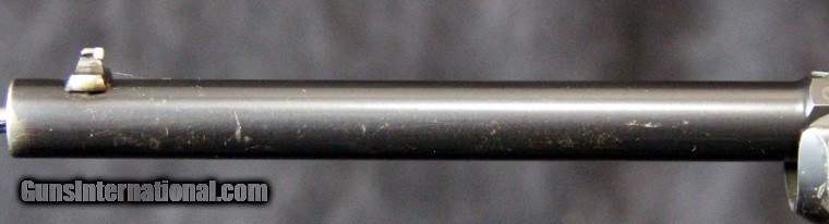 Description: .22rf, lr, #1400A, 8 inch barrel, blue finish, 2 piece walnut grips, original sights, early 1920's. Condition: excellent bright bore, 90% blue overall, very good grips,excellent mechanically, pivot screw has been "tightened", excellent marks. SOLD Curio/Relic: Yes |