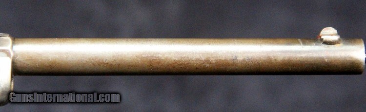 Description: .22rf, #29879, 8 inch part octagon barrels, blue and nickel finish, 2 piece walnut grips, original sights. Condition: good bore with pin prick oxidation, 50% barrel blue thinning, 80% nickel remains on frame and butt cap, very good grips, "jaw" marks on either side of the frame near opening latch, excellent marks, excellent mechanically. SOLD Curio/Relic: Yes |