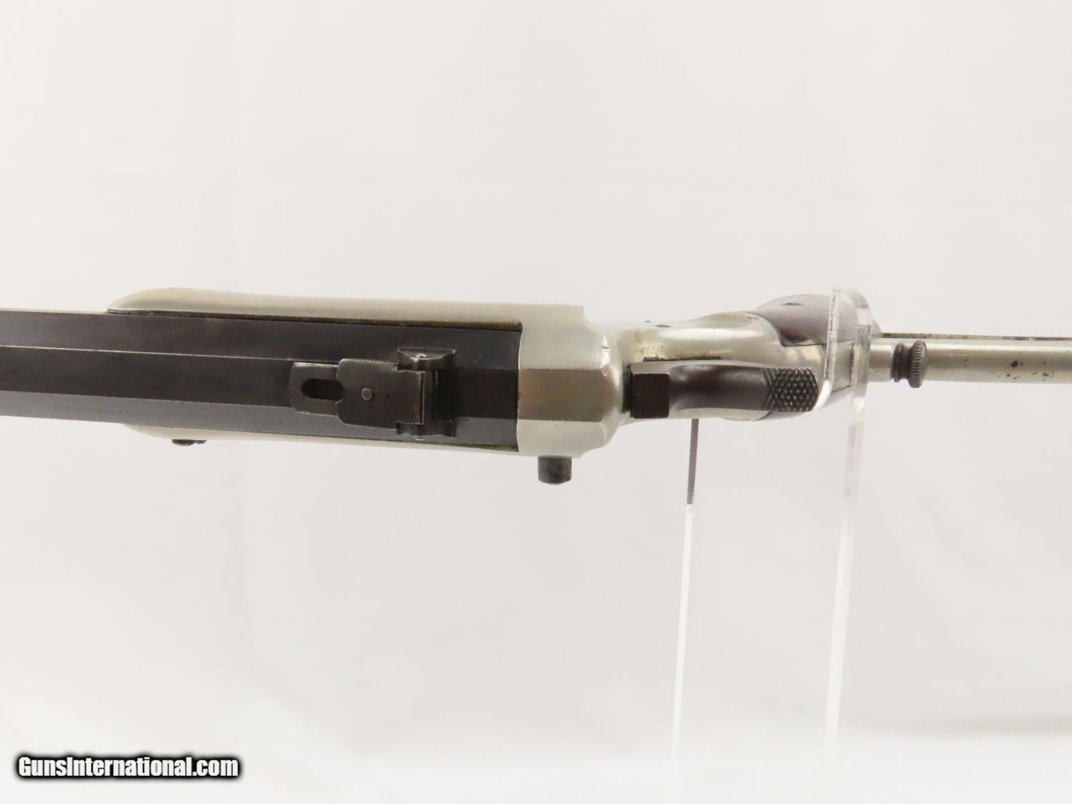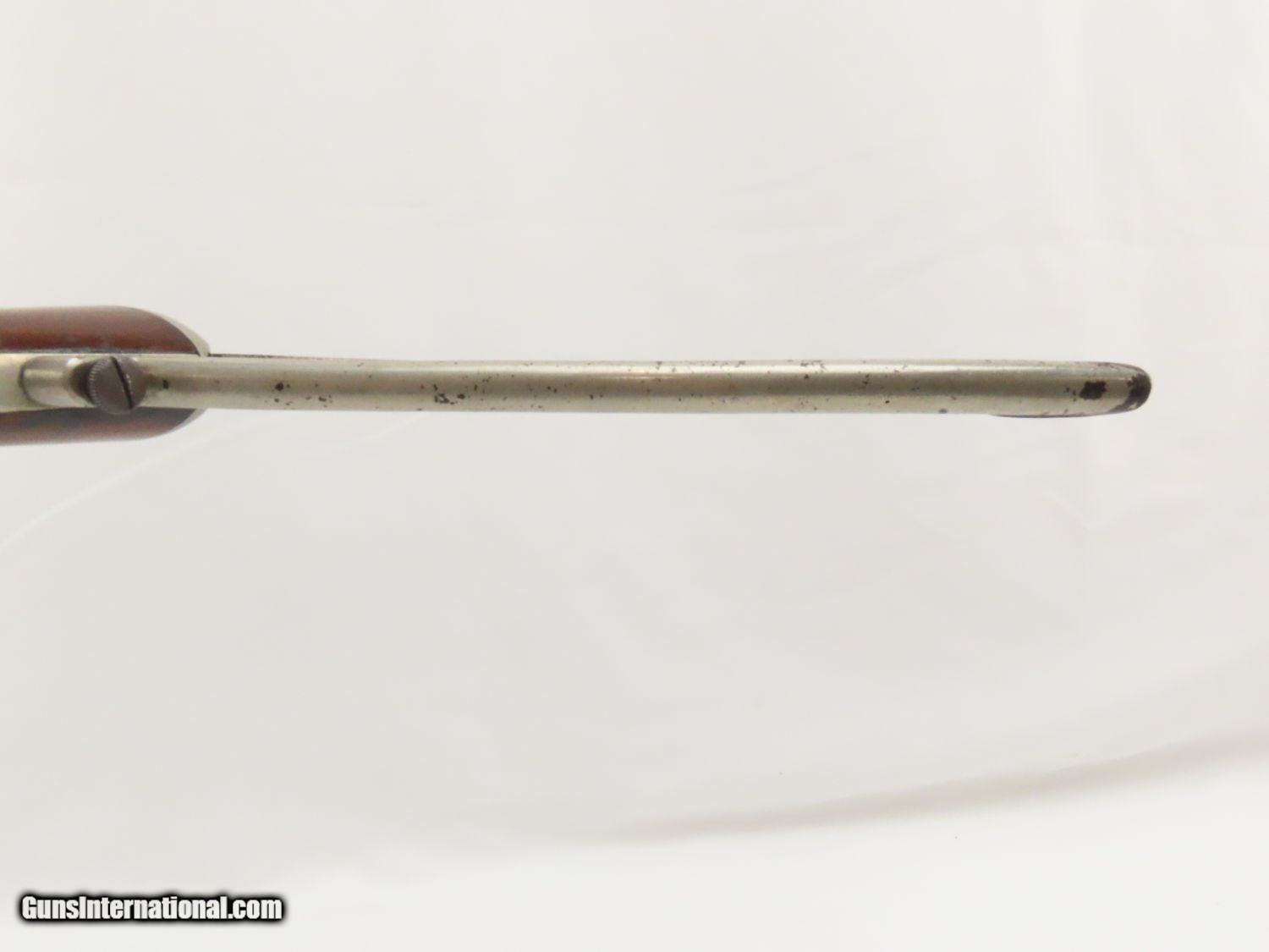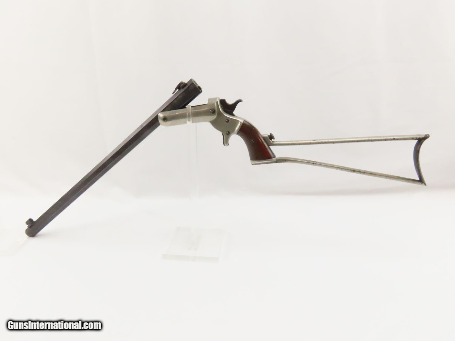 Description: Stevens HUNTER’S PET No. 34 C&R Pocket Rifle with MATCHING # SHOULDER Stock SCARCE 1 of 4,000 with Matching Numbered Shoulder Stock! Here we present a Stevens Hunter’s Pet No. 34 Pocket Rifle with matching numbered shoulder stock. This is a tip-up barrel, single shot rifle in .32 rimfire. It makes for a fantastic plinker and utility gun. The Hunter’s Pet was made from 1872 through the end of the century with a total amount of only 4,000! Not only is this a scarce gun, but it still has the same number shoulder stock that it was originally made with. Heavy octagonal barrel. The rear sight is a flip-up design with a slider. The front sight is a bead on a fine post within a protective hood. The overall condition is fine. Great blue and nickel finish. The action is strong. The bore is good and sharp rifling remains. A unique piece from the early-20th century! This firearm is classified as a Curio & Relic. Barrel is 18 inches. Caliber: .32 Rimfire Overall condition as seen in photos. Very Fast. Very Safe. FREE SHIPPING. Will need to be sent to your local FFL or C&R licensee. This firearm is classified as a Curio & Relic. Guaranteed AUTHENTIC & Includes CERTIFICATE OF AUTHENTICITY. ancestryguns $1400 #20740 SOLD Curio/Relic: Yes |