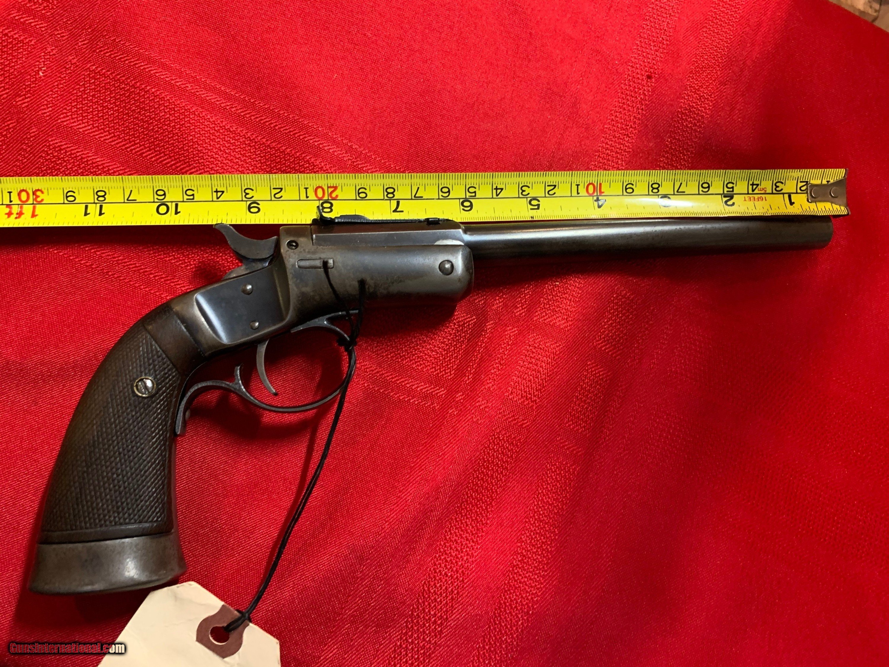 Description: Stevens model 35 8" barrel. Bore a little rough with deep rifling. Original sights. Steel butt cap. Weight 25 oz. SOLD Curio/Relic: Yes |