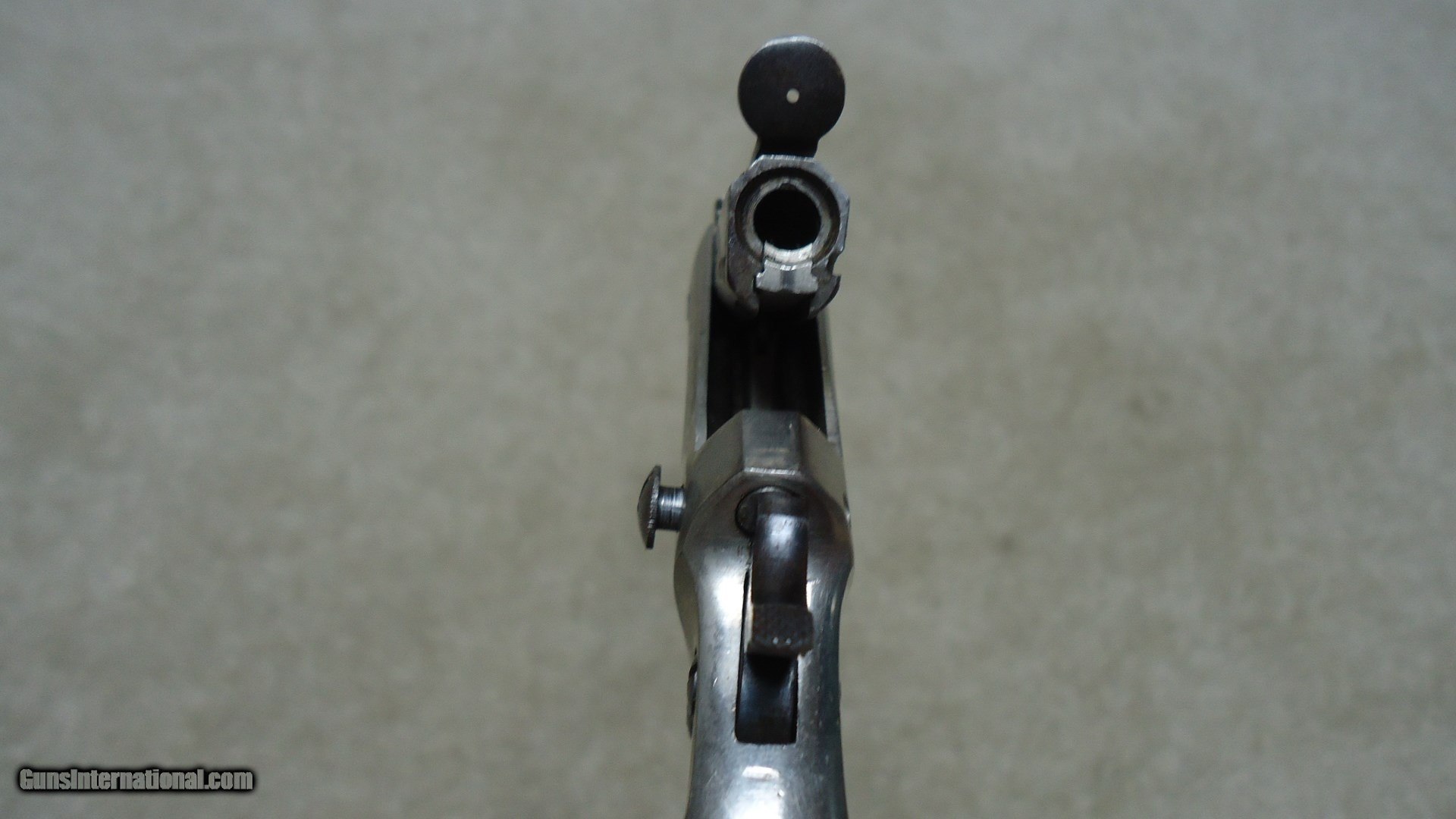 Description: STEVENS RELIABLE POCKET RIFLE No. 42 SECOND ISSUE IN .22 LONG RIFLE CALIBER WITH 10” BARREL AND MATCHING SHOULDER STOCK. This is an extremely fine condition example with about all the blue remaining on the barrel that shows only light age and a little plum mixing. The receiver retains about all the original nickel as does the matching number shoulder stock. The serial number 72XXX matches on the barrel, receiver slot in the butt and on the stock. Exc. walnut grips and fine+ bore is bright with good rifling and only a few small blemishes. Remarkably, it still retains the original aperture rear sight (instead of a buckhorn) paired with the original globe with pinhead front sight! Exc. screws and markings. Super example. SOLD Antique: Yes Manufacturer: STEVENS Model: RELIABLE POCKET RIFLE No. 42 Serial Number: 72XXX Caliber Info: .22LR Condition: Excellent Barrels: 10 |