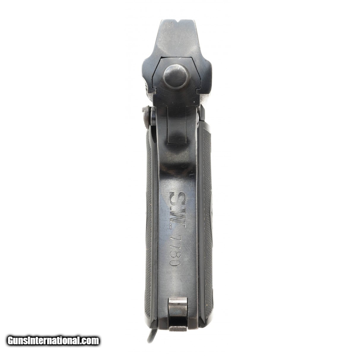 Description: "Serial number 53470. 32 caliber with a 3 5/8" barrel. This gun is in excellent condition as expertly restored. All markings are nice and sharp. Action works perfectly. The back strap has the marking “SW7780" Grips are excellent. SOLD Curio/Relic: Yes |