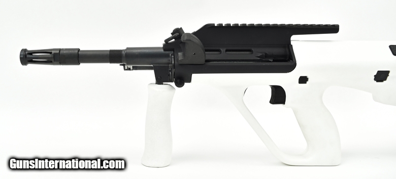 Steyr Aug A3 M1 caliber rifle. Steyr Aug A3m1 in artic white color scheme. Comes with one magazine. Artic white or “Imperial White” is a very uncommon color.