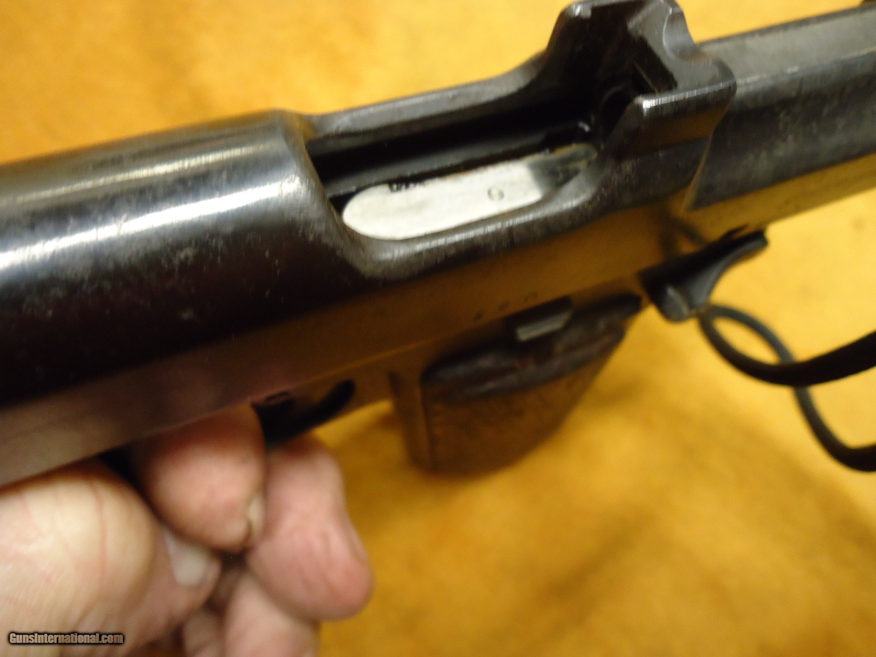 Description: 1914 Steyr Pistol in 9mm Steyr. Romanian Contract. Bore: Some Pitting, Metal: Fair Probably Rreblue, Wood: Fair SOLD Curio/Relic: Yes Handgun Caliber: 9mm Largo (9mm Bergmann-Bayard, 9x23mm Largo) Manufacturer: Steyr Model: 1914 Serial Number: 2902 Condition: Fair Metal Condition: Fair, probably reblue Wood Condition: /fair Bore Condition: fair - some pitting |