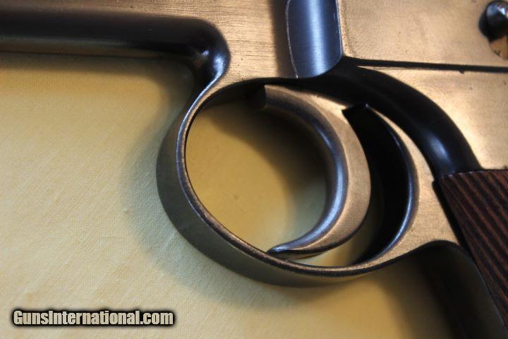 Description: Excellent Roth-Steyr M1907 Austro-Hungarian Military Pistol in 95% original condition, Minor edge wear on left side of barrel otherwise near new!! Mechanically perfect and matching. Unit markings for the 1st Austro-Hungarian Feldkanonartillerie Regiment. Wn-10 proof for Weiner-Neustadt Arsenal 1910, Caliber 8mm, With Orig. holster and one stripper clip of ammo all in exc. orig condition! Bore is sharp and excellent SOLD Curio/Relic: Yes |