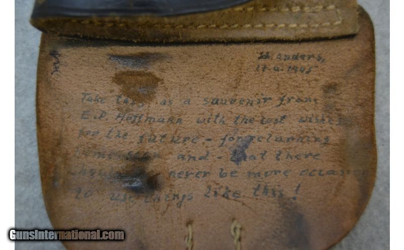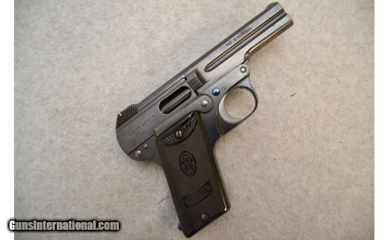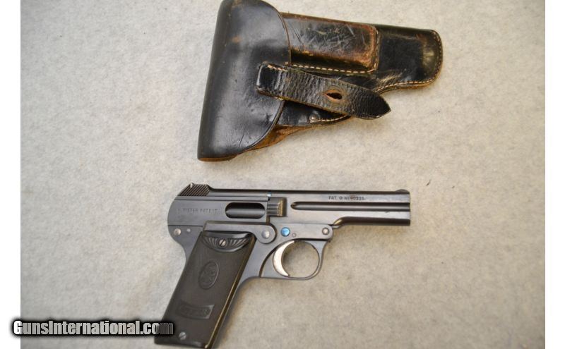 Description: This pistol is in fair condition for the sole reason of the rust on the top of the barrel. Sadly this corrosion is pretty bad; but the finish elsewhere is in great condition. The nitre bluing on the pins and some of the other components is intact and bright; such as with the barrel tip up lever. The normal bluing has minimal thinning on the hard edges; but-outside of where it failed on the top of the barrel-has held up remarkably well. The grip panels have only a few minor marks on them and do not appear to be cracked or have sustained much outside of handling wear. The bore on this pistol is truly in excellent condition with brilliant shine and strong rifling.It might not be a museum quality example of a Pieper Patent Steyr; but it should be a top level shooter grade one. SOLD Curio/Relic: Yes Caliber Info: 7.65mm Browning/.32 ACP Metal Condition: Fair Wood Condition: Very good Bore Condition: Excellent Barrels: 3 1/2 Triggers: Stainless with smooth surface Stock: Black plastic grips Weight: 1 1/2lbs Sights: Front blade & rear notch Extras: Comes with a leather holster and a single magazine. Item Location: Green Bay, WI |