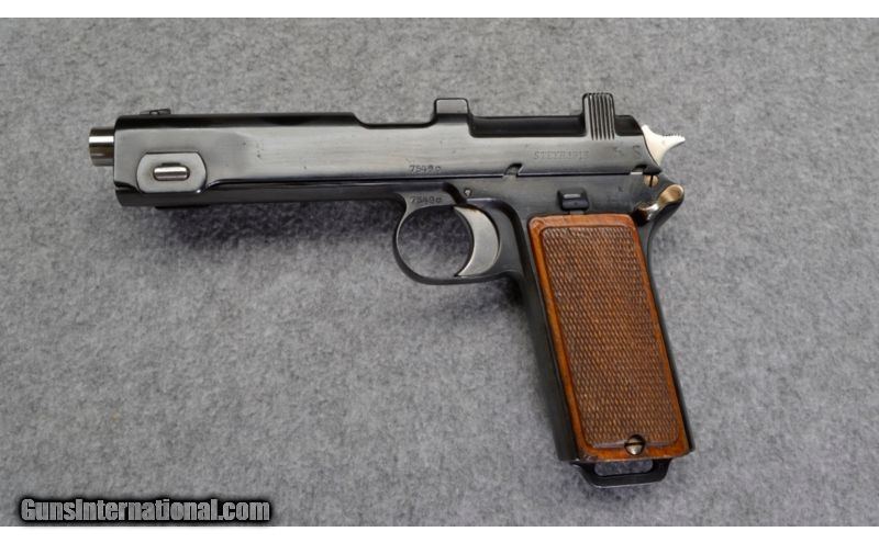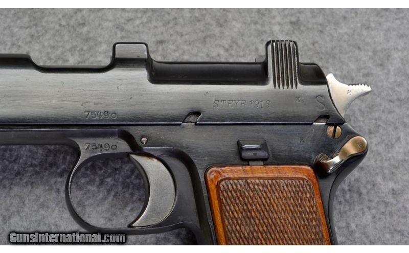 Description: Strip fed Steyr 1916, refurbished. SOLD Chambers: Strip fed Metal Condition: Good for age and use Wood Condition: Good for age and use Bore Condition: Good for age and use Barrels: 5 inch Triggers: Solid smooth Weight: 2.15 pounds Sights: V notch Item Location: Springfield, OR |