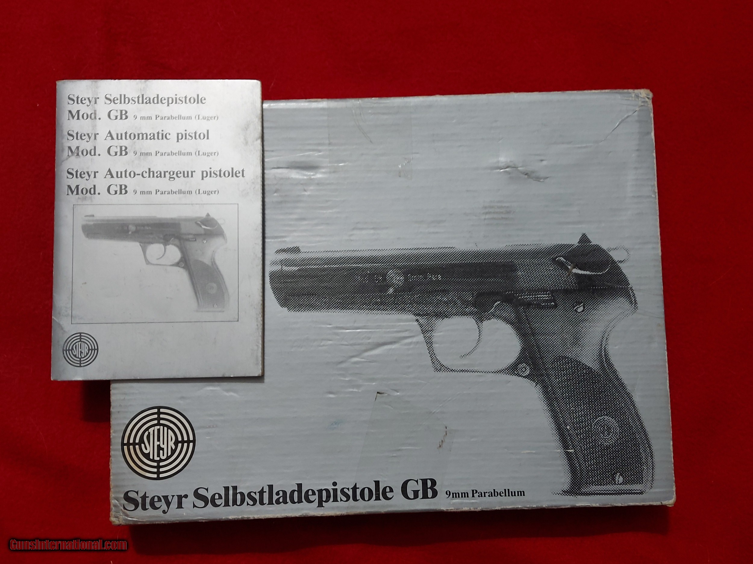 Description: This is a like new in the box Steyr GB 9mm pistol. It appears to have been fired litlle if any. It comes with the box, manual and tools. Hard to find these in this condition, Payment by postal money order or certified bank chack only please. Shipping and insurance additional. SOLD Handgun Caliber: 9x19mm Parabellum (9mm Luger, 9x19mm NATO) |